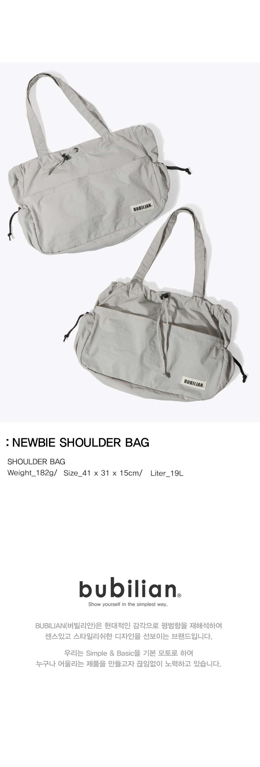 버빌리안 뉴비 숄더백 그레이