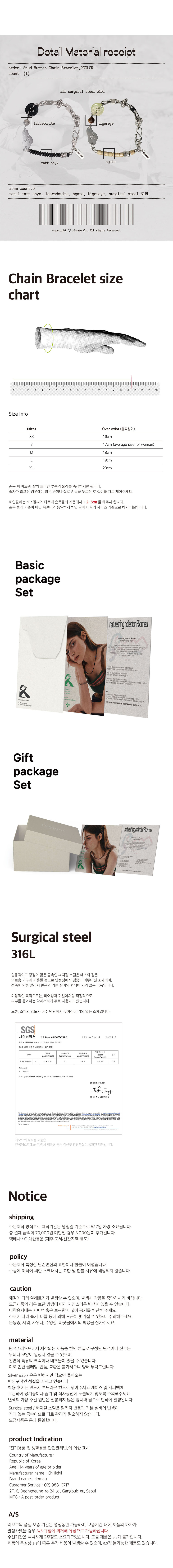 리오므 스터드 버튼 체인 팔찌 블랙
