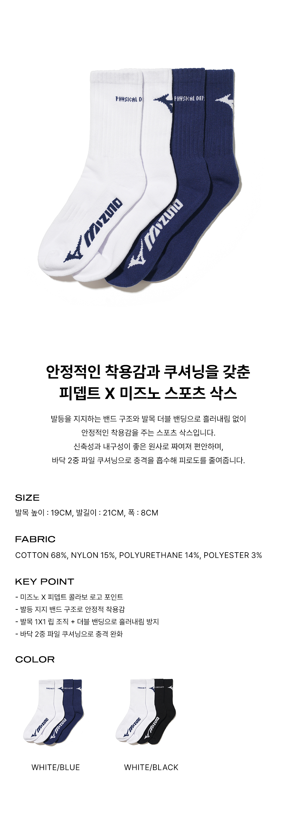 [2PACK] 피뎁트 X 미즈노 로고 양말 화이트/블루