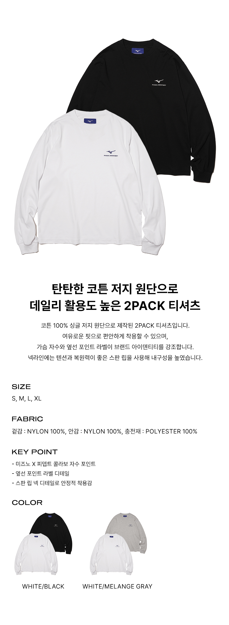 [2PACK] 피뎁트 X 미즈노 로고 티셔츠 화이트/블랙