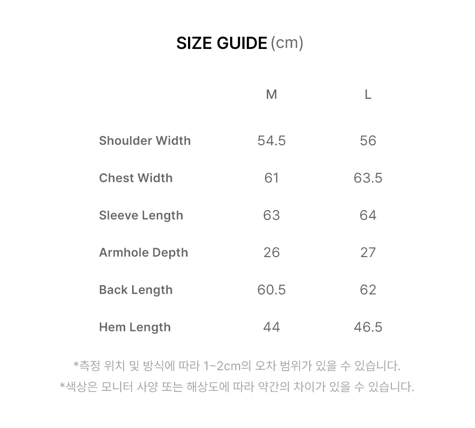 측정 방법에 따라 사이즈에 일부 오차가 있을 수 있습니다.