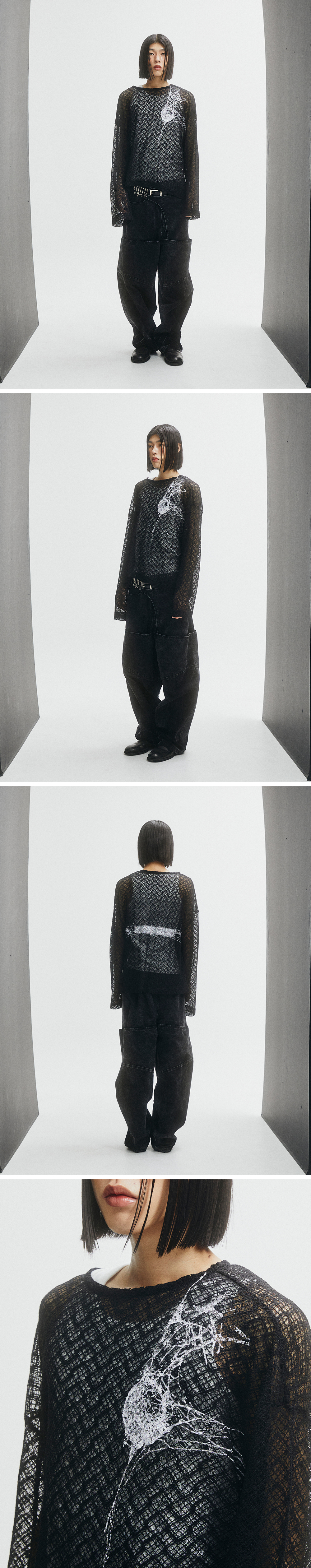 펀치 드렁크 파티즈 스파이더 메쉬 니트 블랙