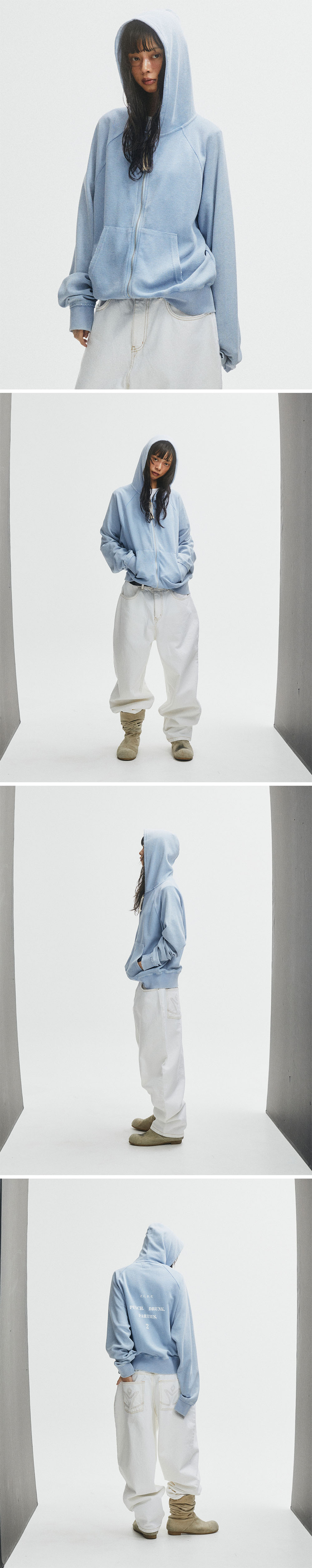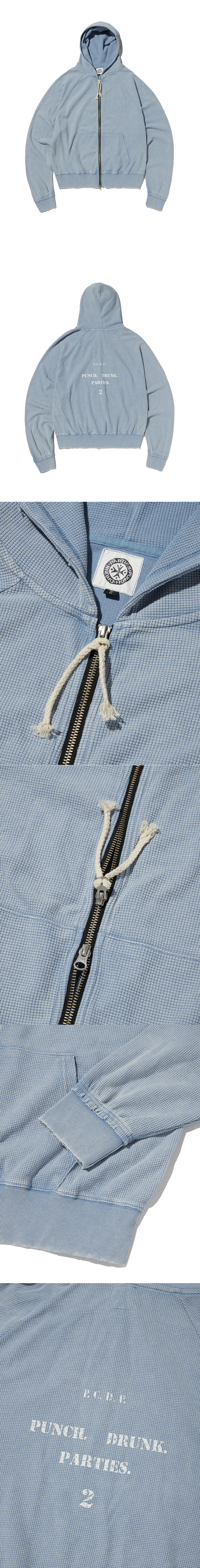 펀치 드렁크 파티즈 PCDP 워시드 와플 집업 후드 워시드 블루
