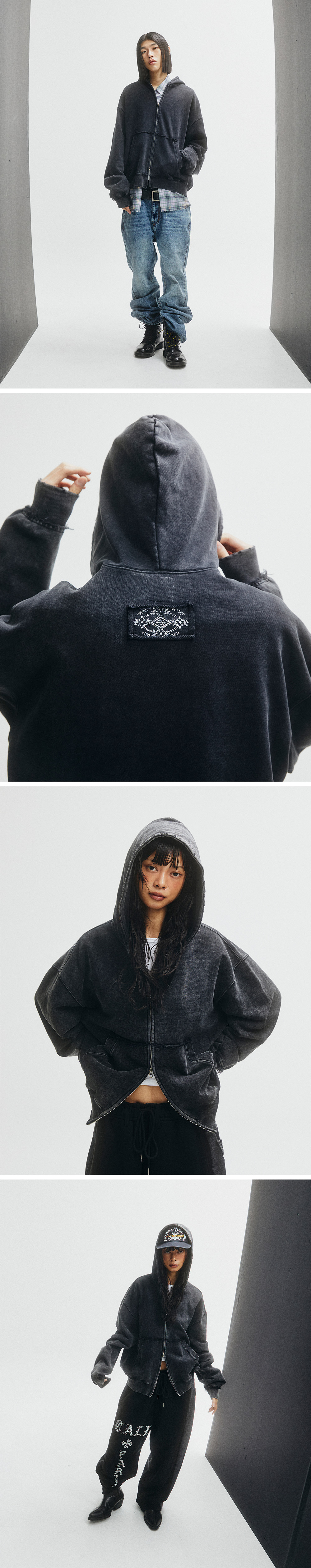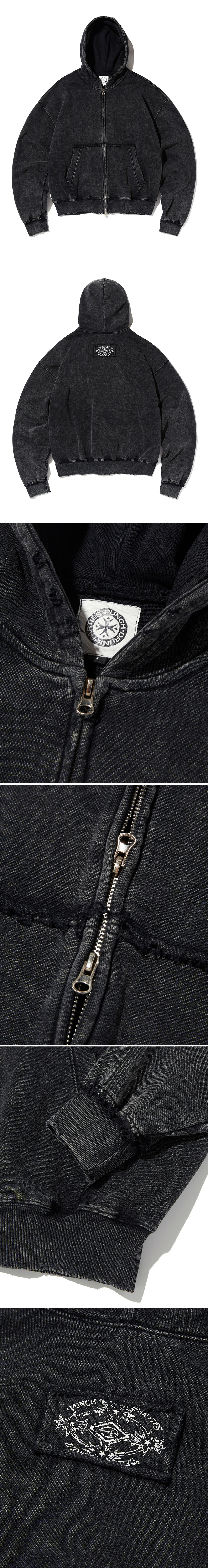 펀치 드렁크 파티즈 크레스트 로고 빈티지 워시드 집업 후드 차콜
