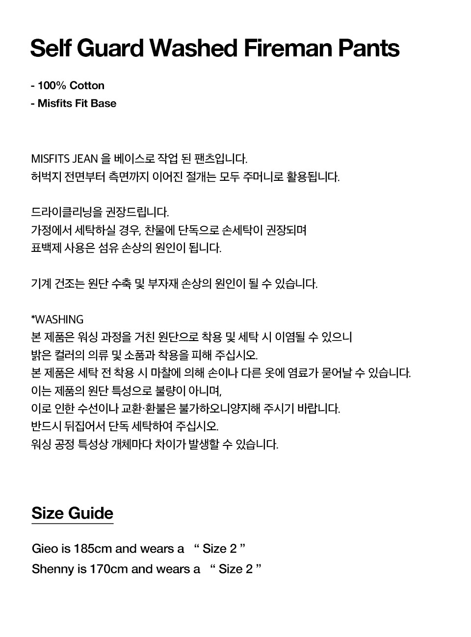 펀치 드렁크 파티즈 셀프 가드 워시드 파이어맨 팬츠 워시드 블랙