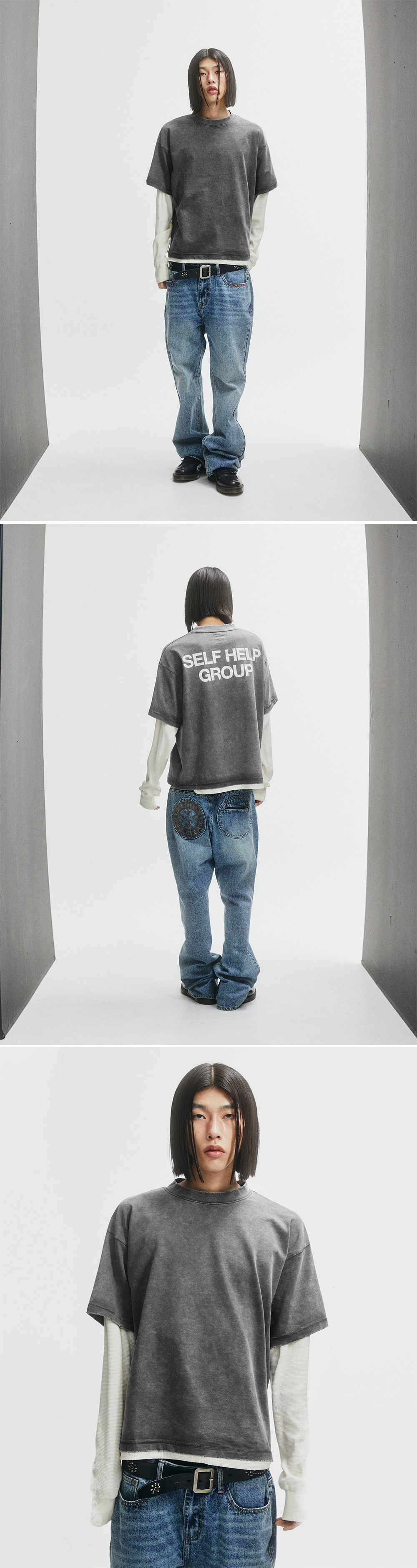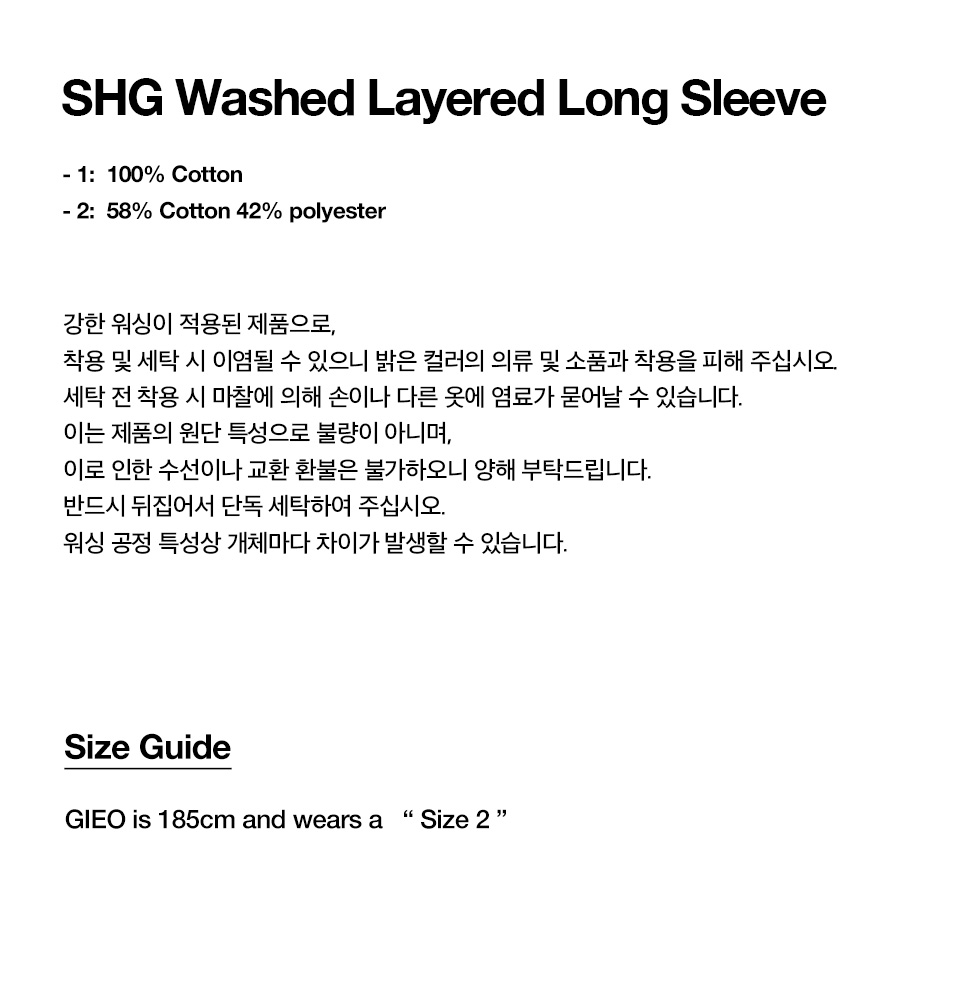 펀치 드렁크 파티즈 SHG 워시드 레이어드 롱 슬리브 차콜