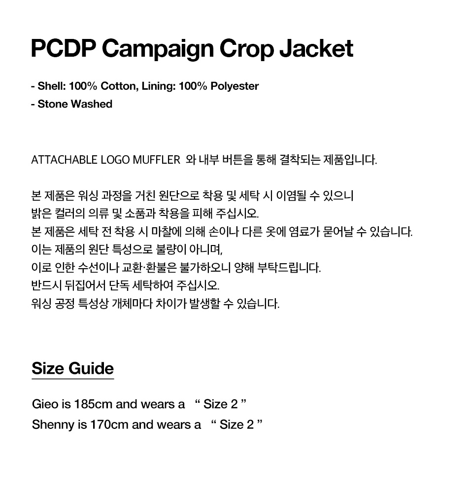 펀치 드렁크 파티즈 PCDP 캠페인 크롭 자켓 워시드 블랙
