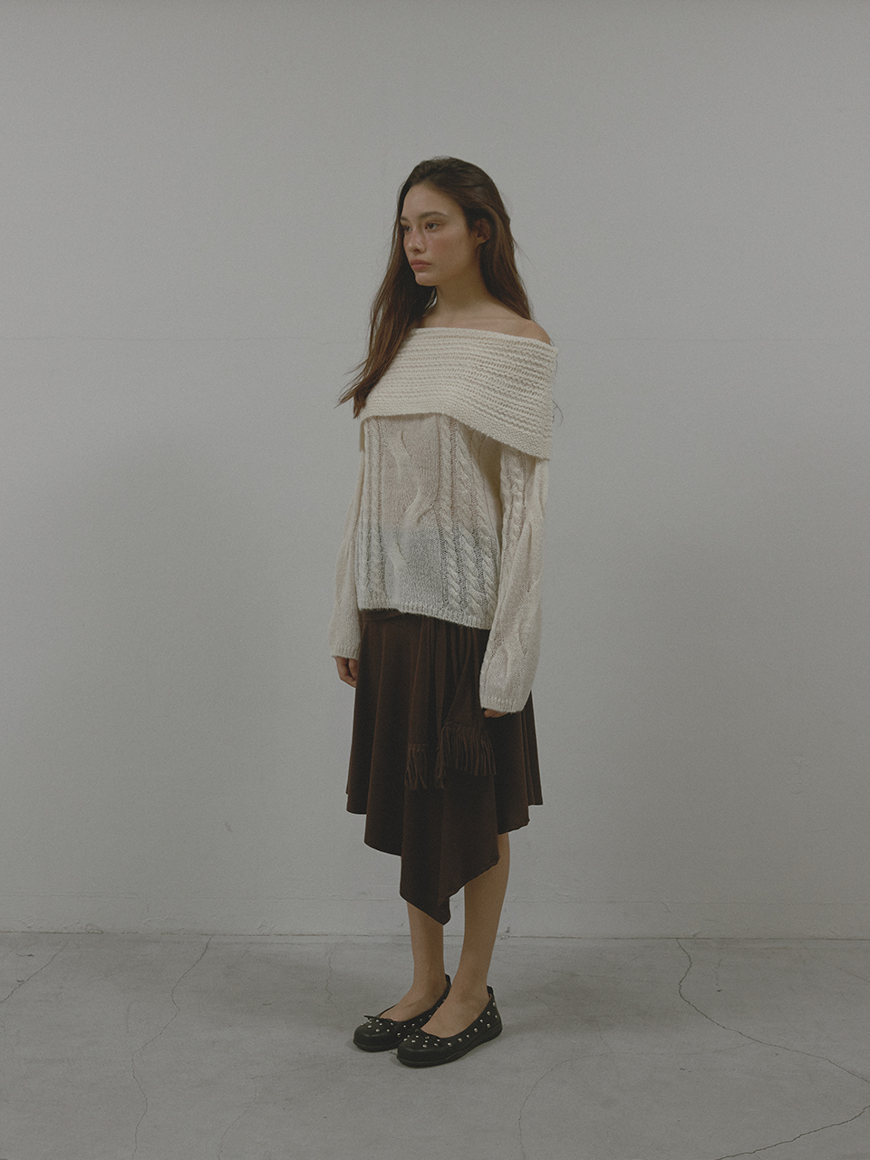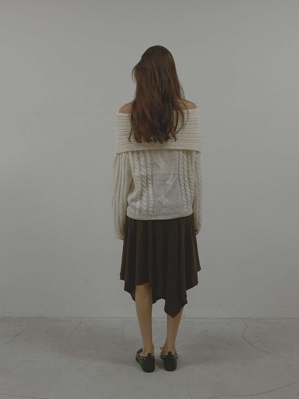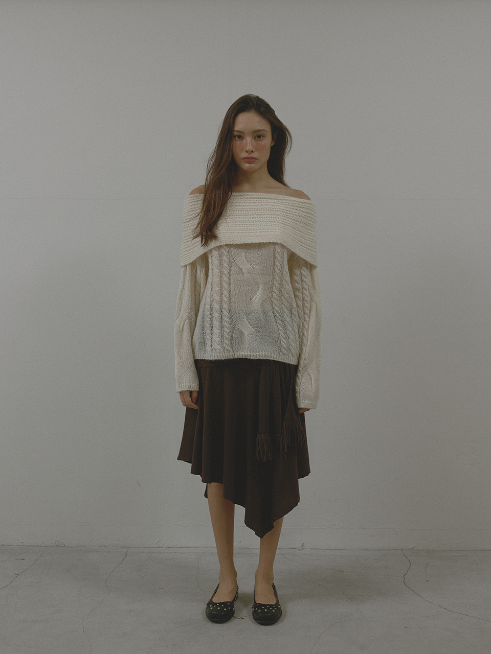 아수라 알파카 트위스트 오프 숄더 니트 아이보리