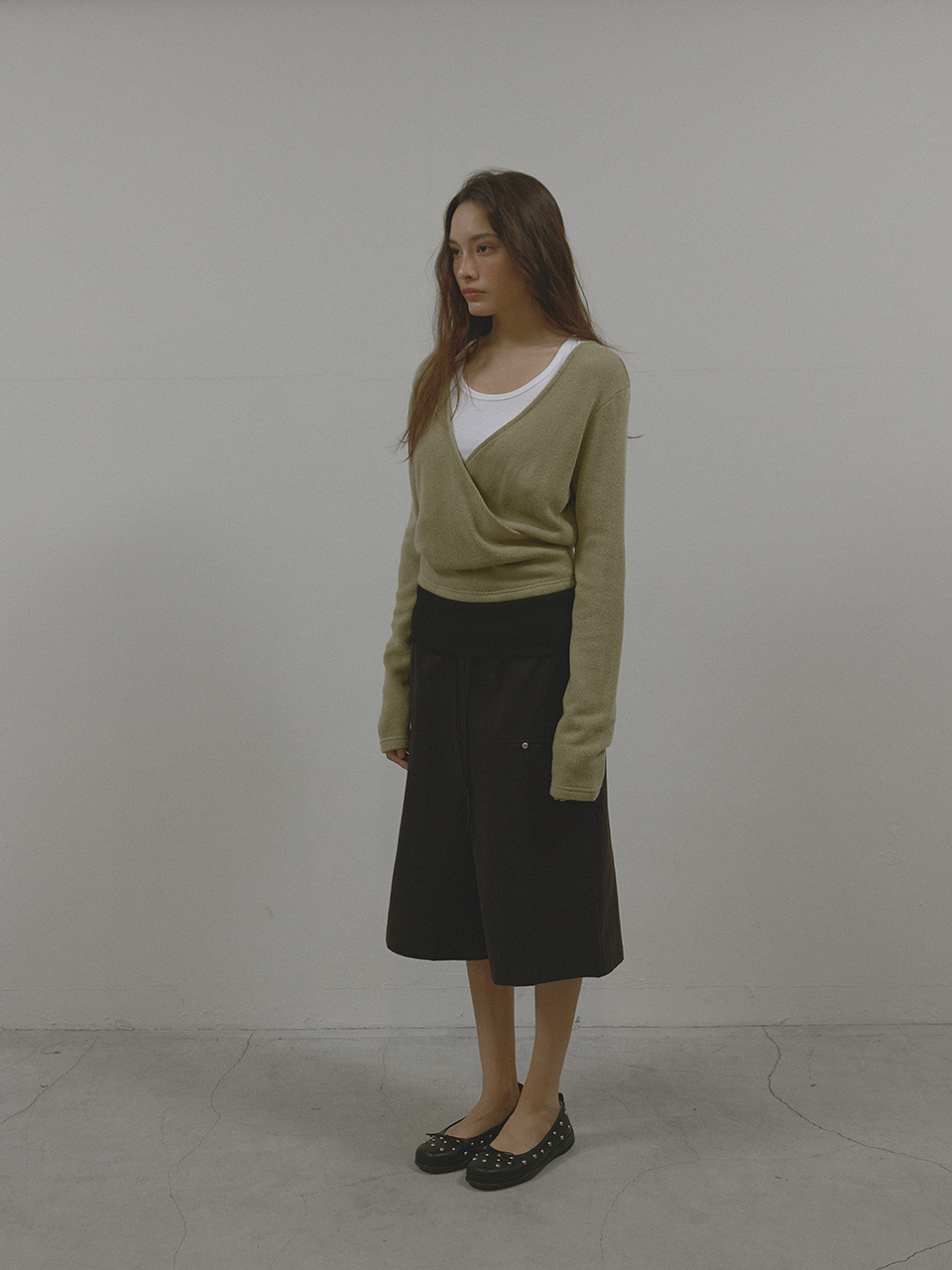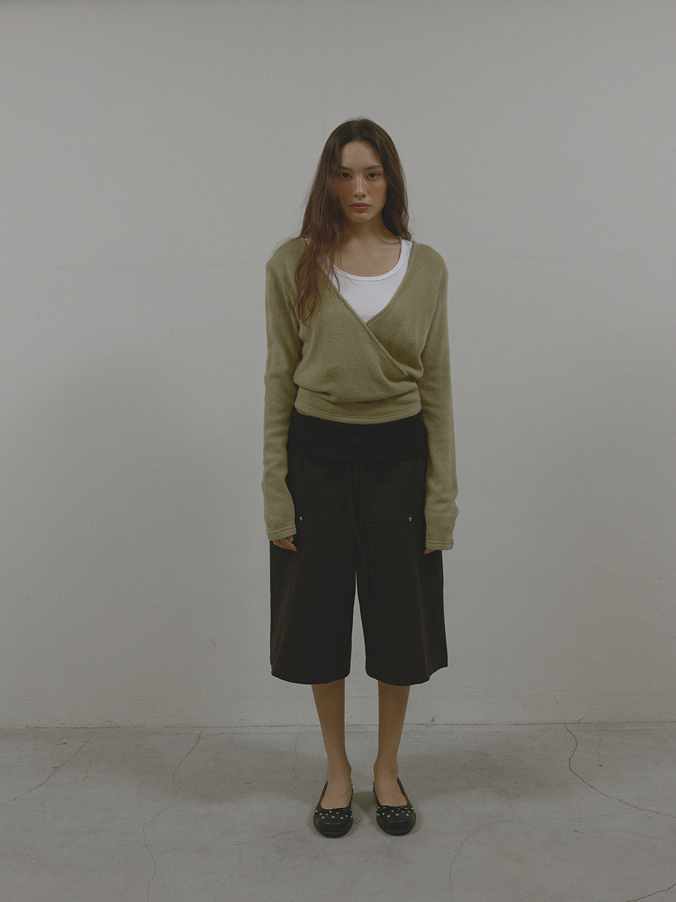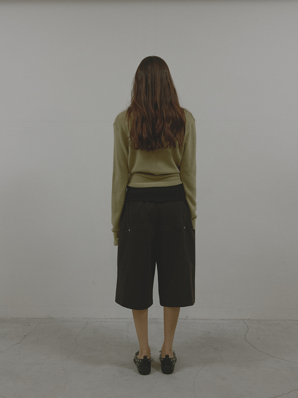 아수라 웨이스트 립드 카프리 팬츠 블랙