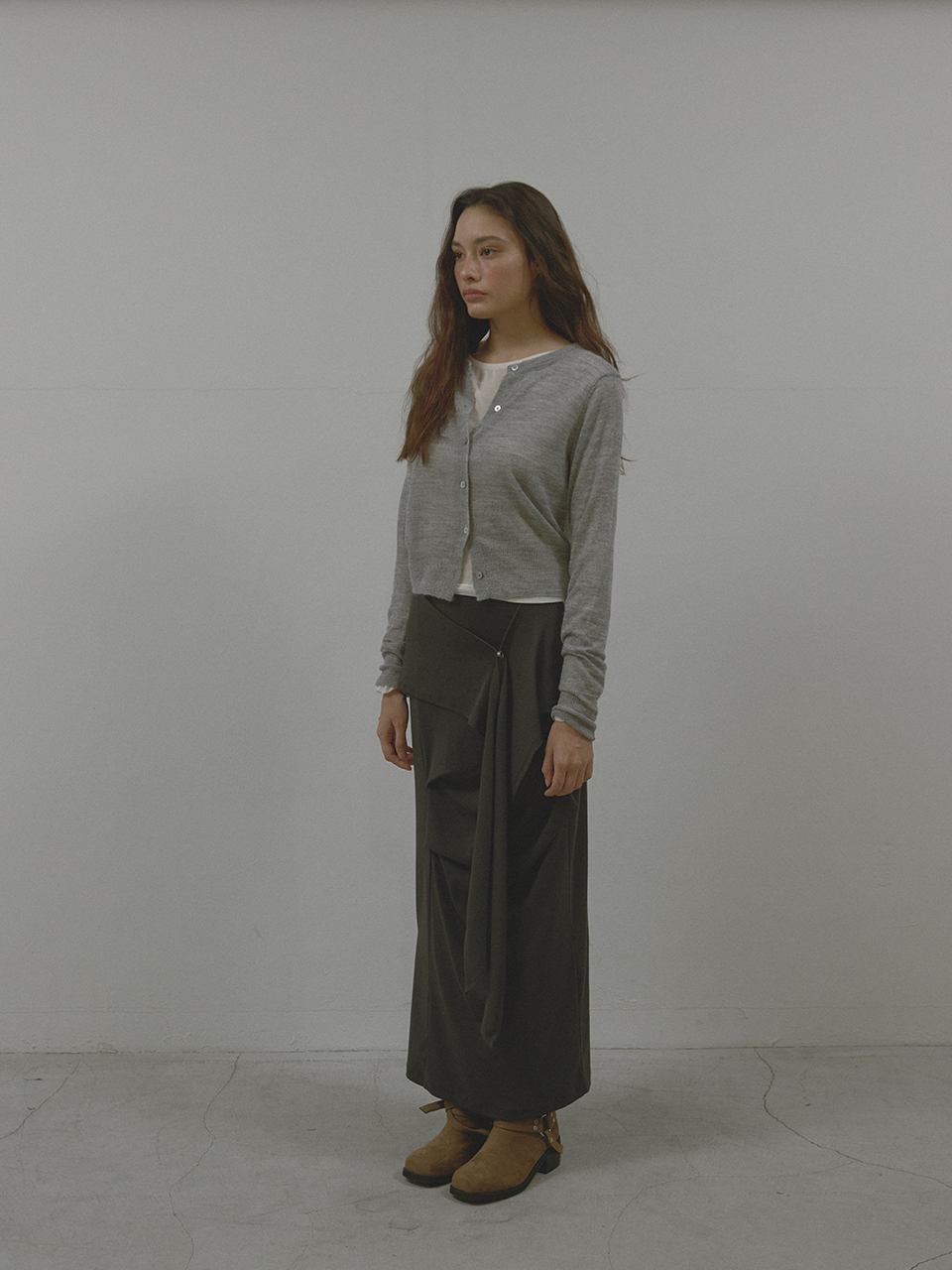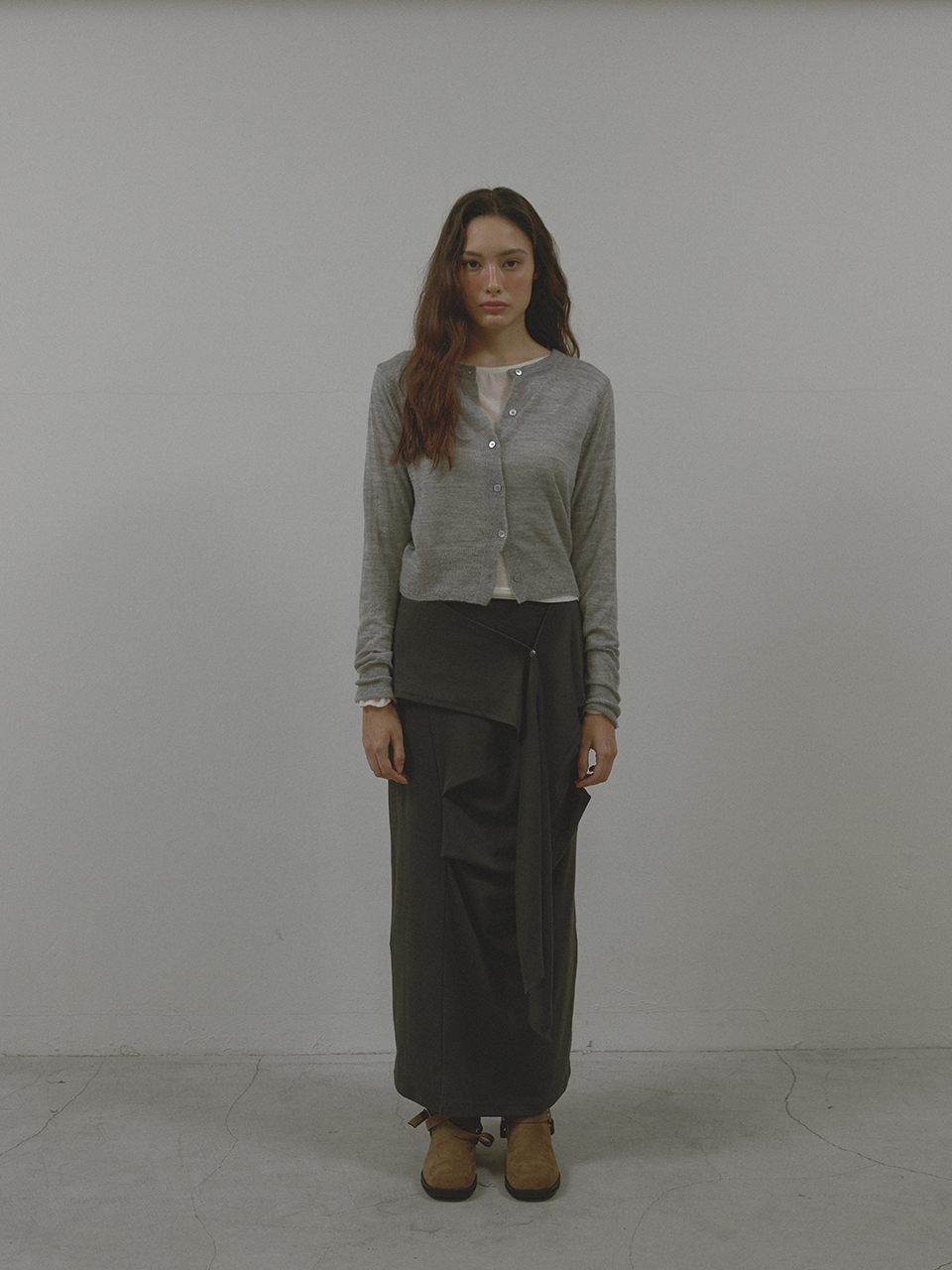 아수라 턱 랩 스커트 차콜