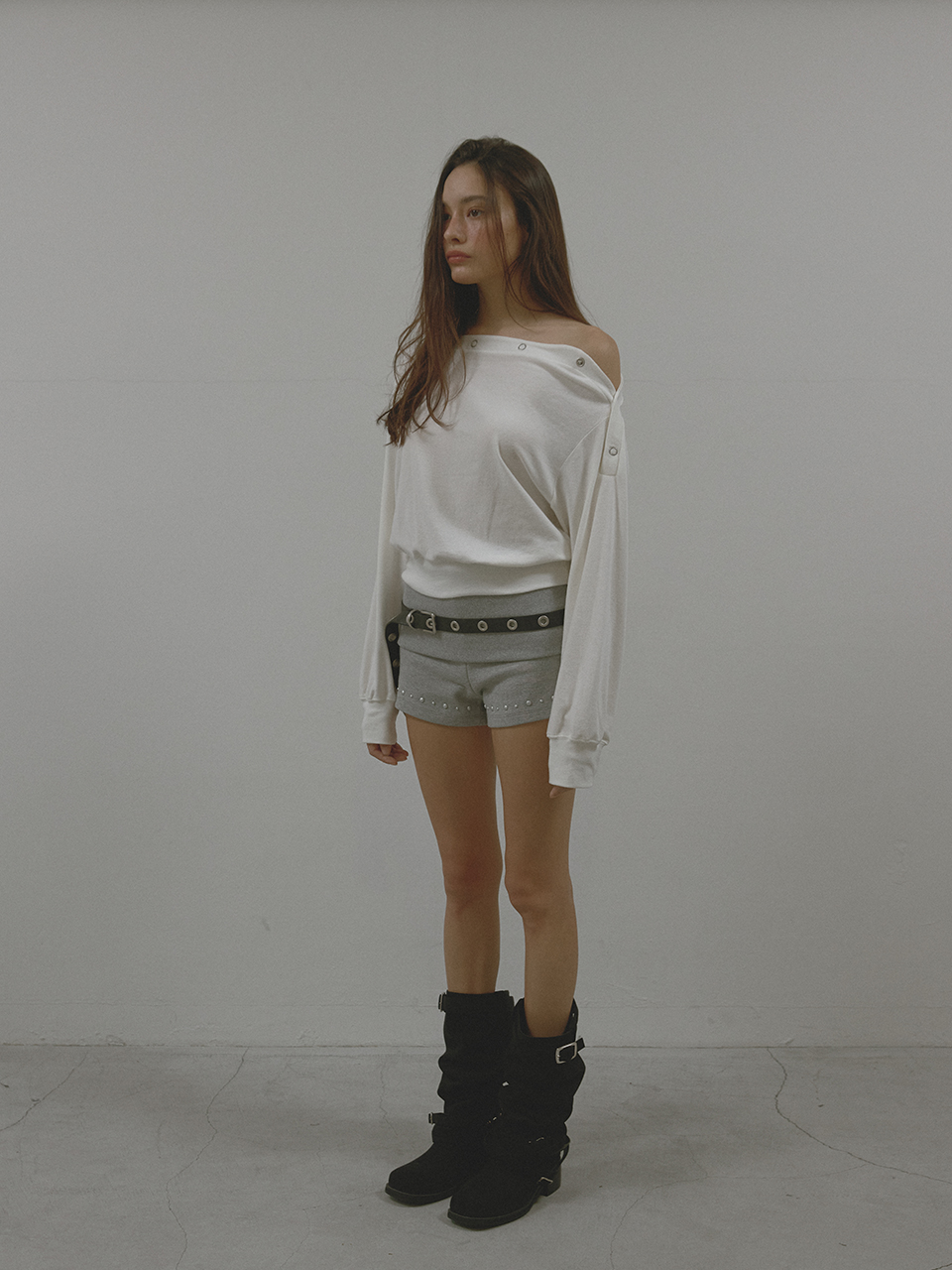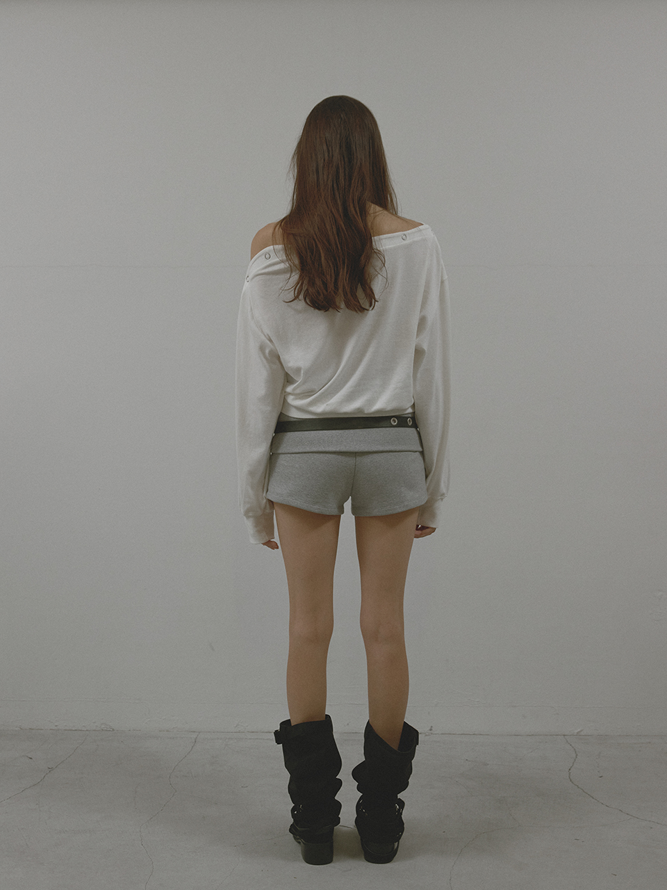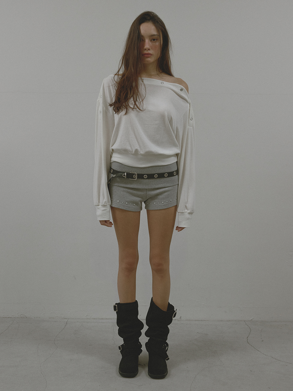 아수라 스터드 립 쇼츠 멜란지 그레이