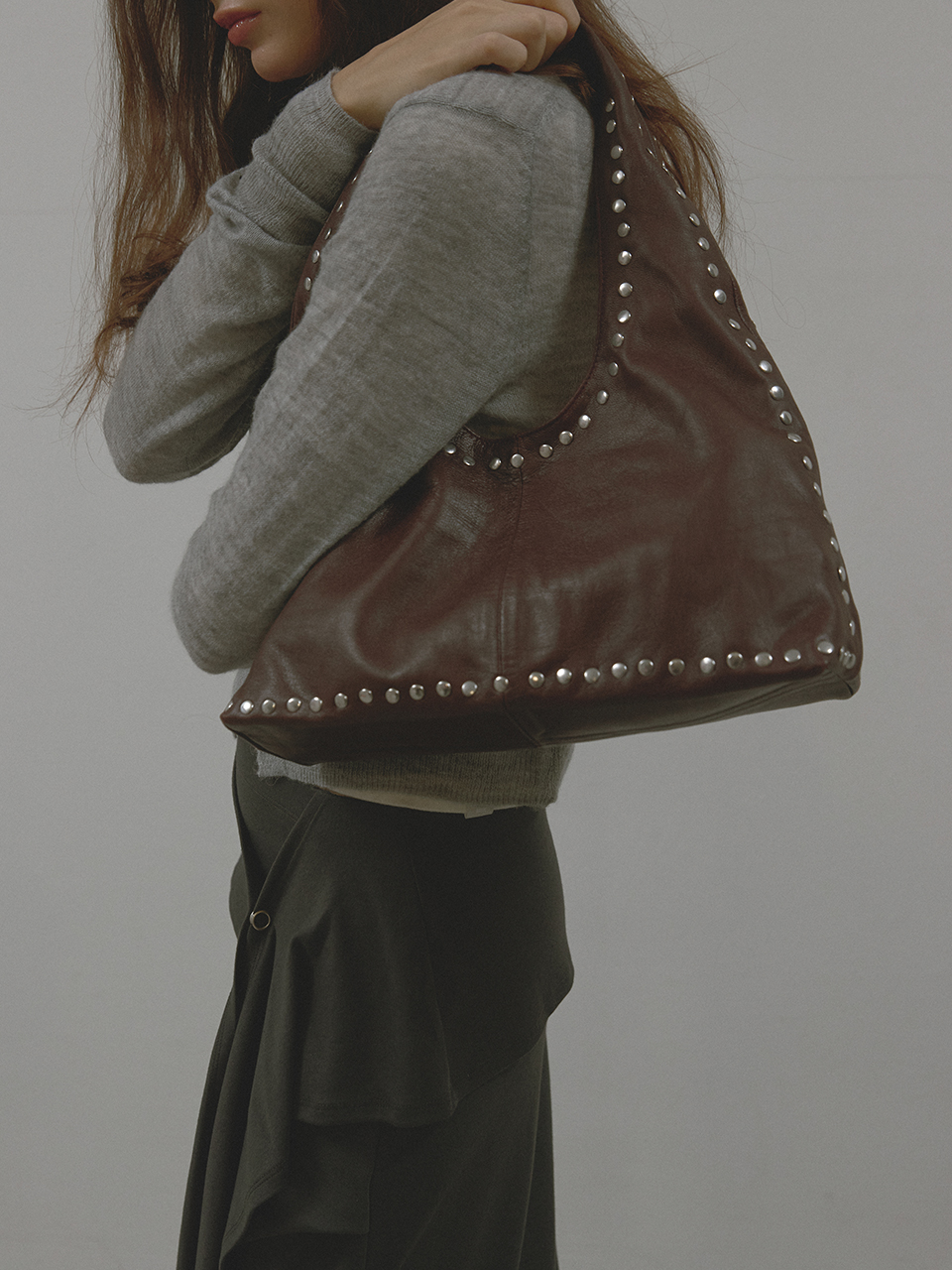 Asura Leather Boho Stud Bag Burgundy