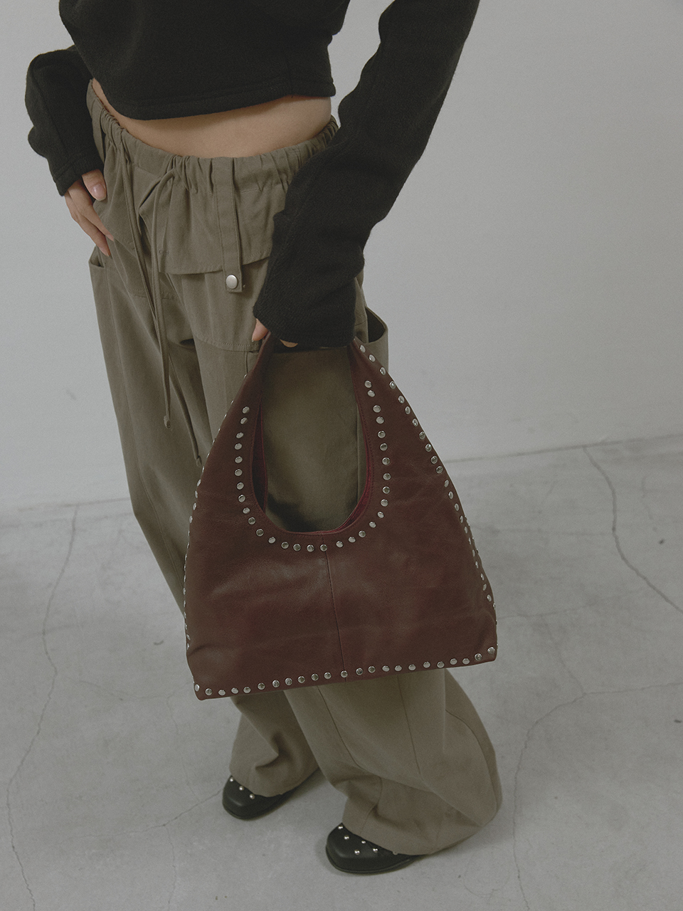 아수라 레더 보호 스터드 백 버건디