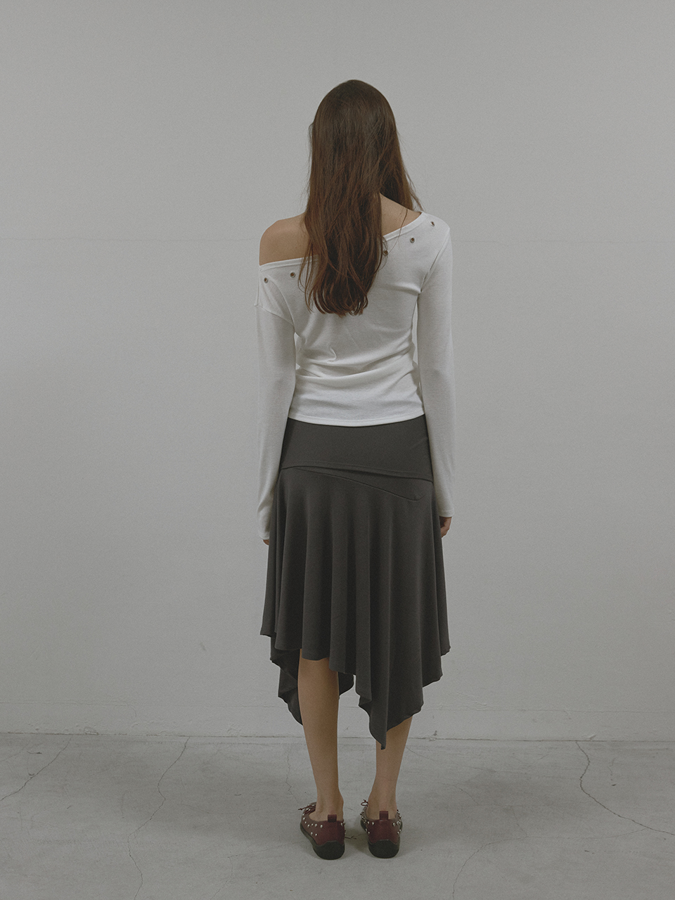 아수라 아일렛 원 숄더 롱 슬리브 티 아이보리