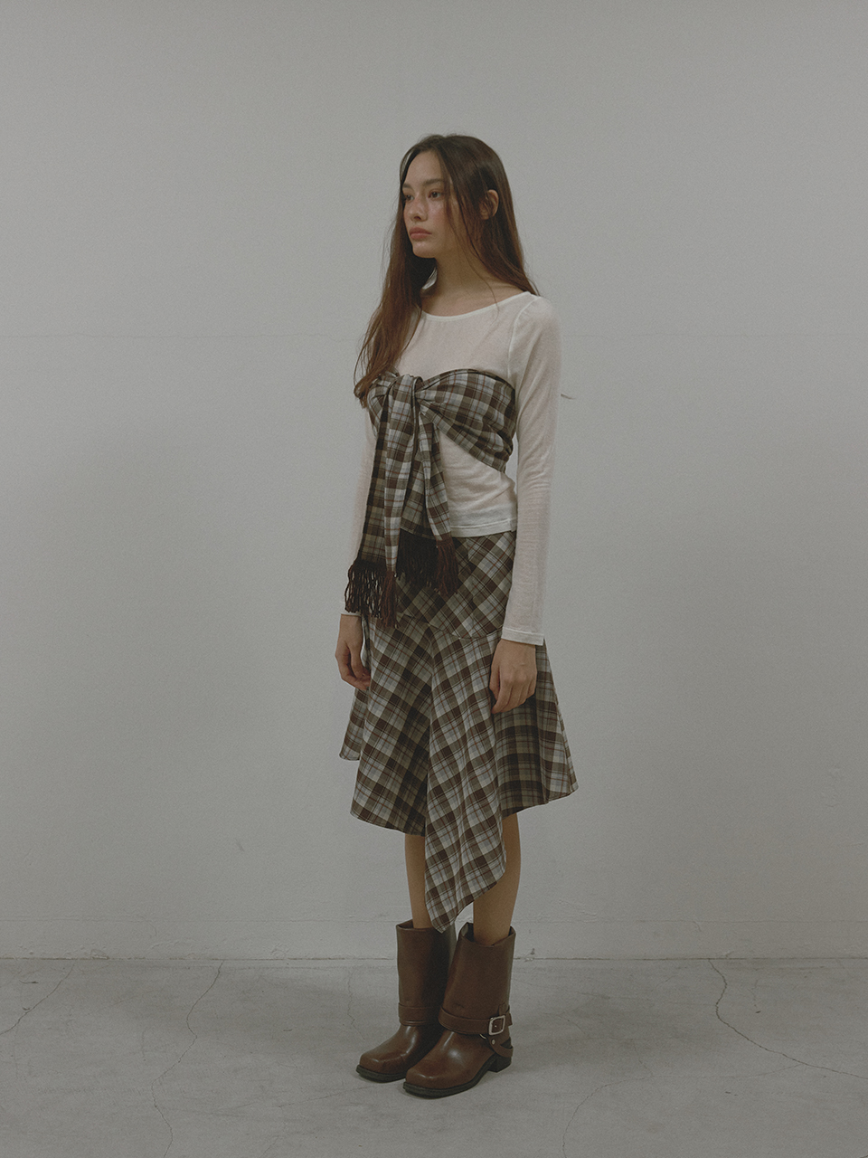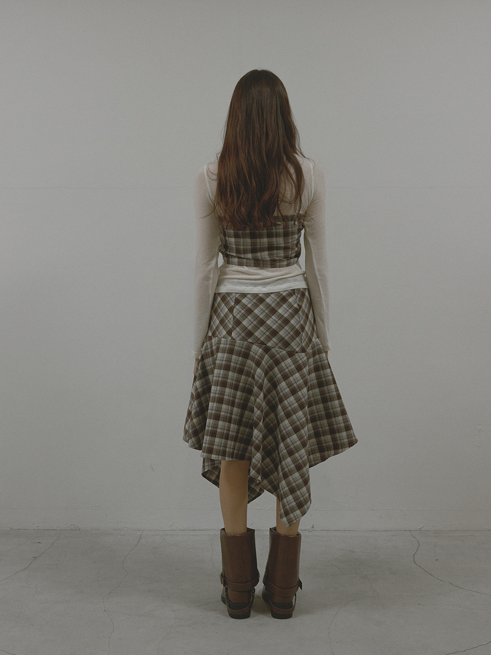 아수라 체크 언밸런스 훌 스커트 브라운