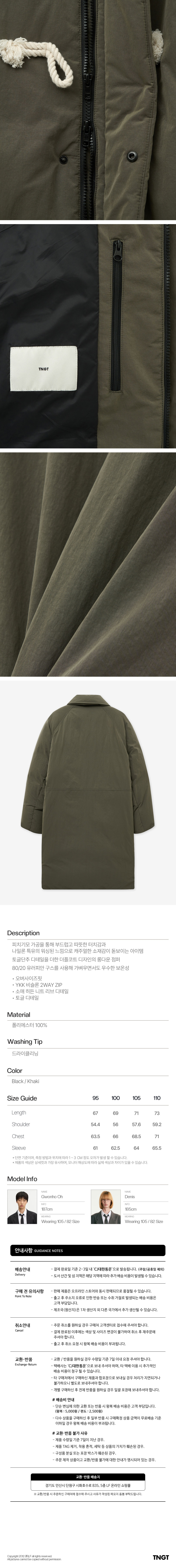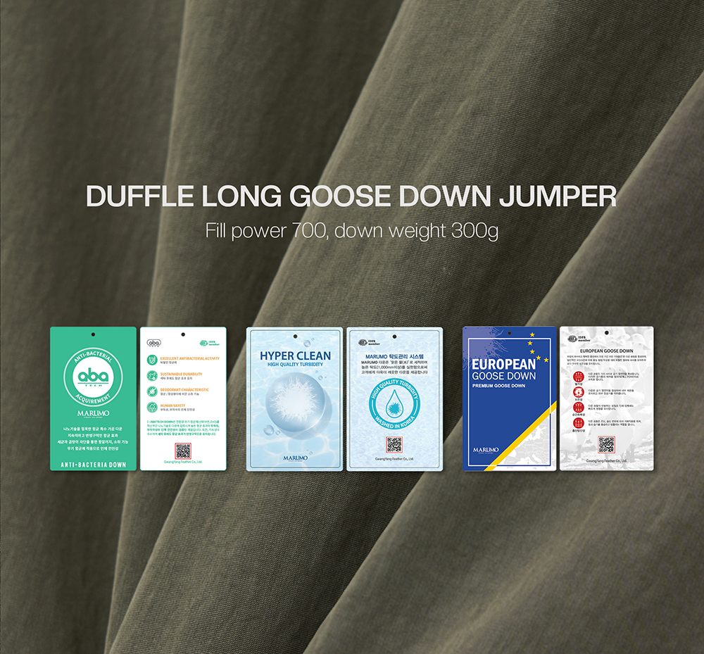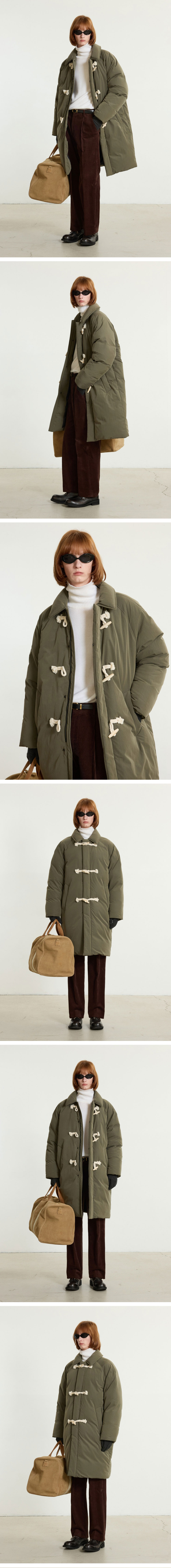 티엔지티 유러피언 구스 더플 롱 다운 점퍼 카키