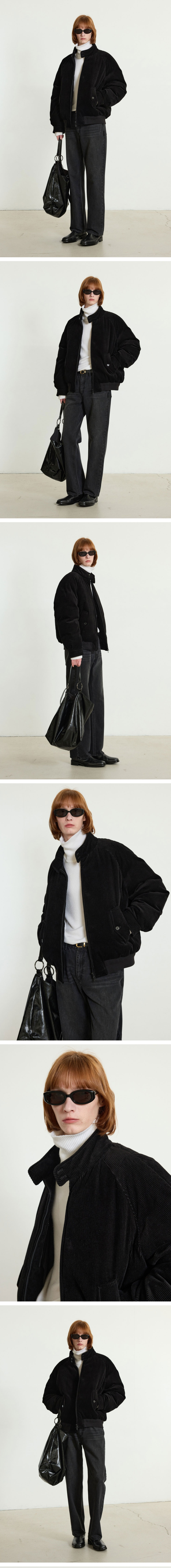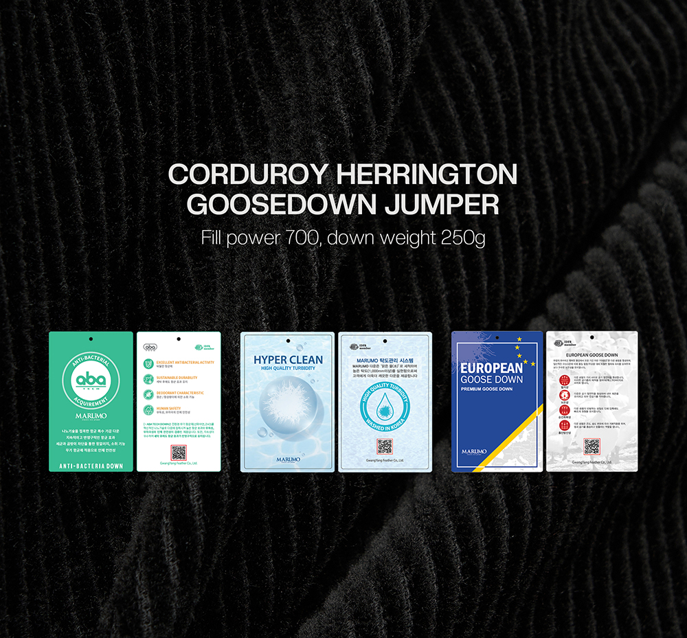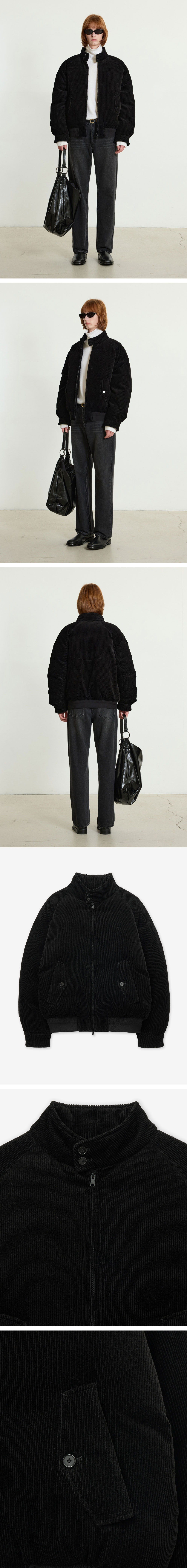 티엔지티 유러피언 구스 코듀로이 헤링턴 다운 점퍼 블랙