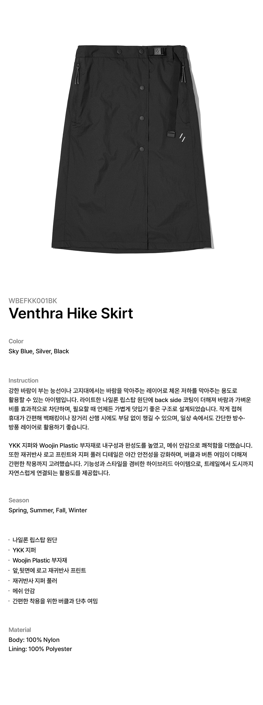 웰터 익스페리먼트 벤트라 하이크 스커트 블랙