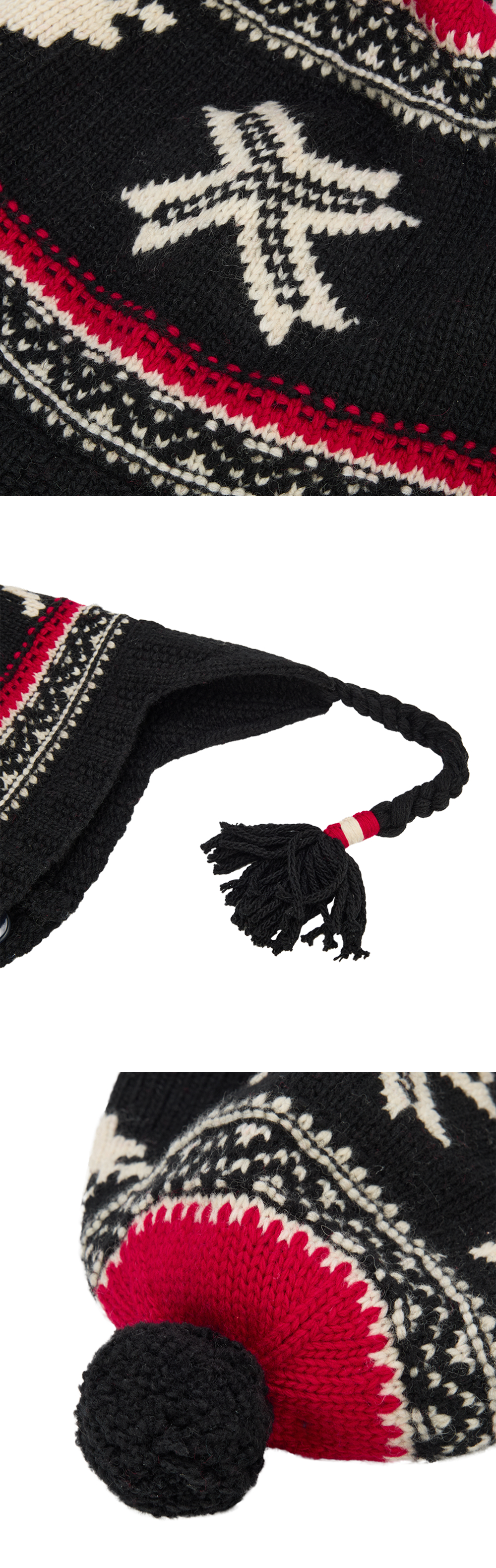 폴로 랄프 로렌 레인디어 울 블렌드 이어플랩 햇 블랙 레드 크림입니다. - 클래식한 홀리데이 무드가 느껴지는 이어플랩 햇 - 사슴 패턴과 스노우플레이크 디자인 포인트 - 따뜻한 착용감을 더하는 이어플랩과 폼폼 디테일