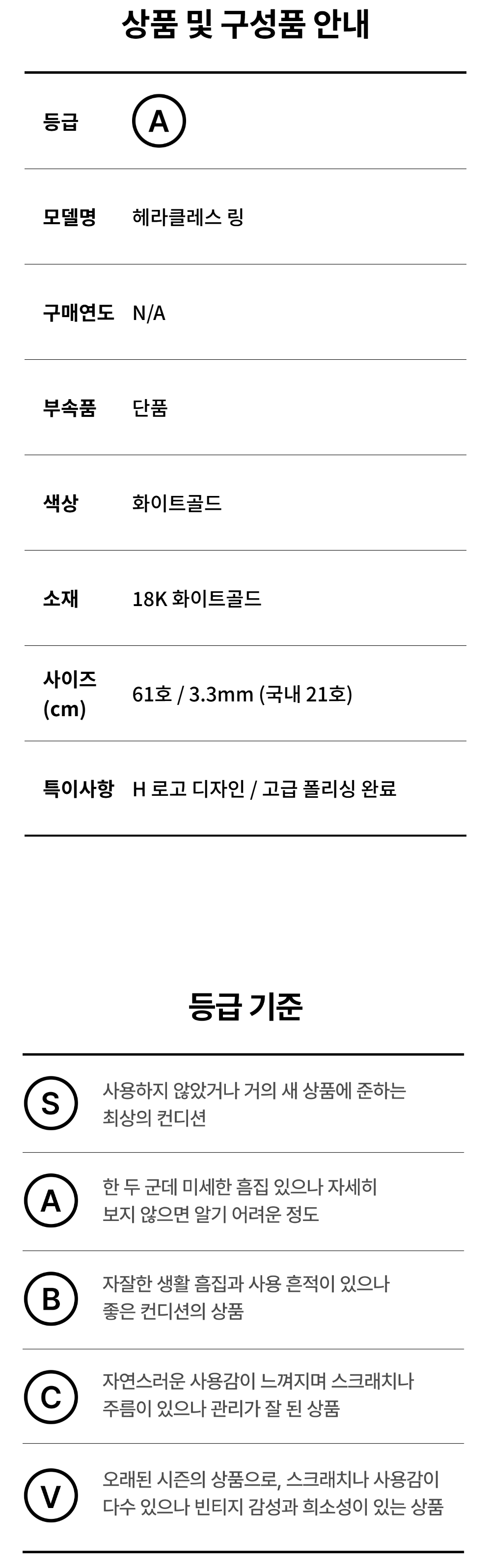 에르메스 헤라클레스링 18K 화이트골드 61호 3.3mm