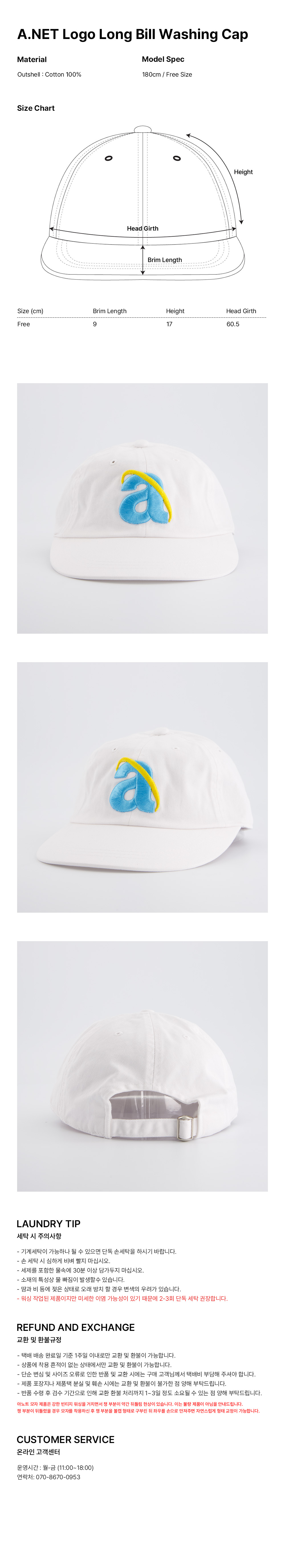 아노트 A.NET 로고 롱 빌 워싱 캡 화이트