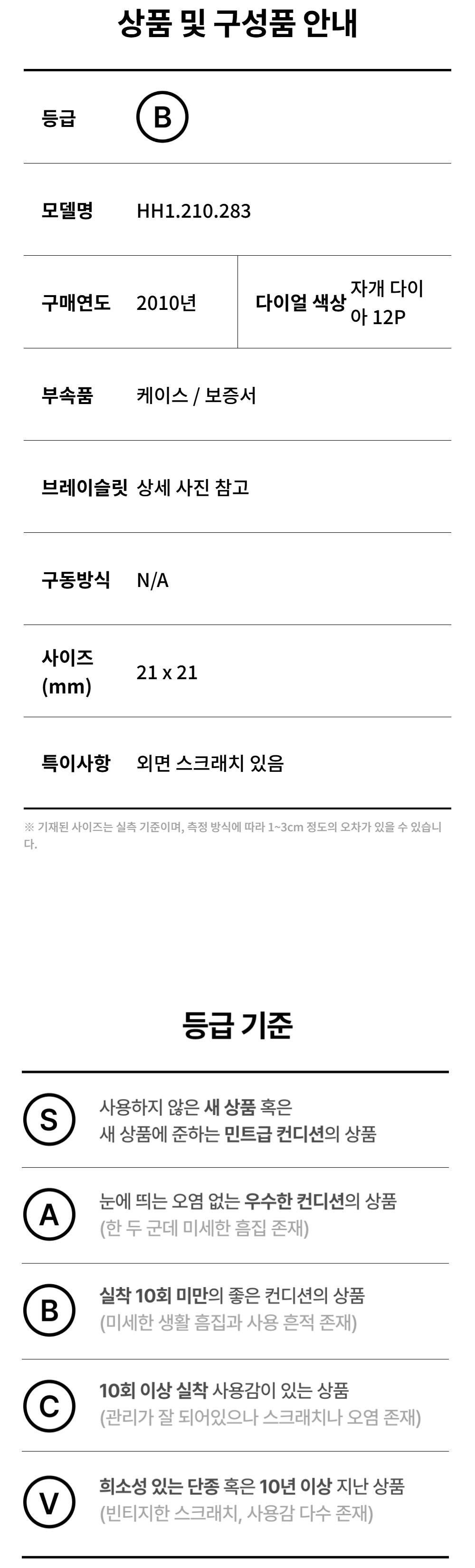 에르메스 HH1.210.283 H아워 스틸 자개 다이아 12P 21mm