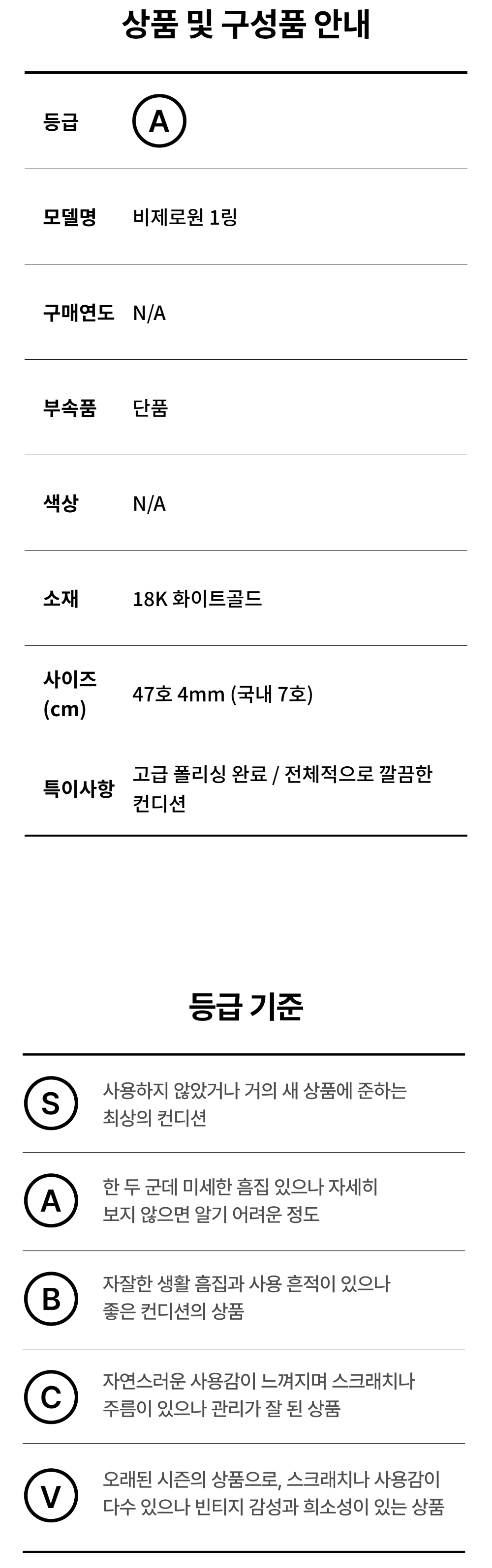 불가리 비제로원 1링 18K 화이트골드 47호 4mm