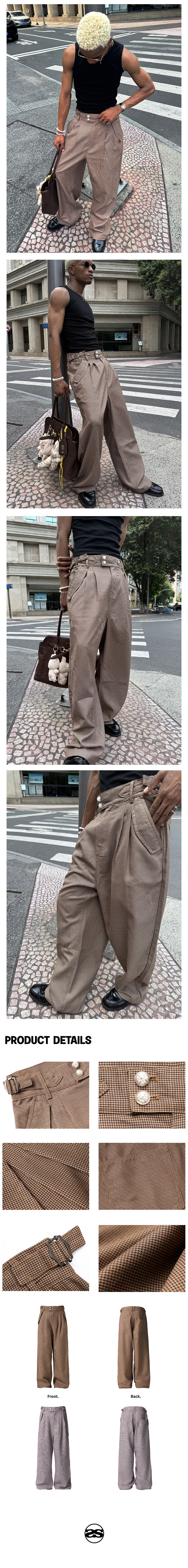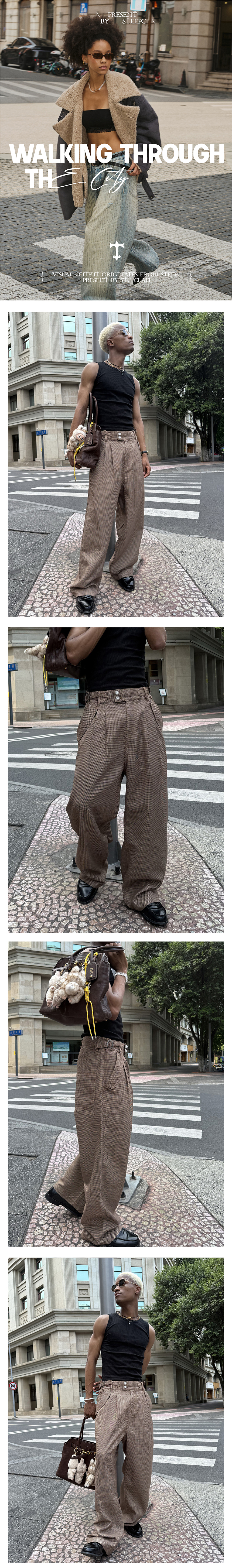 - 하운드투스 패턴을 사용한 투버튼 트라우져입니다 - 클래식한 트라우져 패턴을 사용하였습니다 - 양 사이드 버클 Fabric 90% Polyester | 10% Wool / 300g/m Model info KAKA | 178cm / 62kg / Top M size, Bottom L size