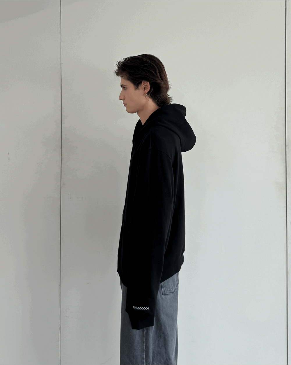 Light Crop Hoodie Zip-up 이너 및 단품으로도 활용도가 높은 후드 집업입니다. 적당한 두께감의 면 폴리 혼용 원단을 사용해 가벼우면서도 실루엣이 잘 잡히도록 제작되었습니다. DETAIL - 크롭 미니멀 후드 집업 - Composition : 62% Cotton, 38% Polyester - 적당한 두께감의 코튼 폴리 원단 - 유려한 실루엣의 제품 - Ykk 비슬론 2way Zip - 오버 핏 - IX 자수 로고 - 드라이클리닝 권장 SIZE - M : 어깨 54 가슴 59 소매기장 70 총기장 62 - L : 어깨 56 가슴 62 소매기장 73 총기장 65 (단위 : CM, 오차범위 1-2CM)