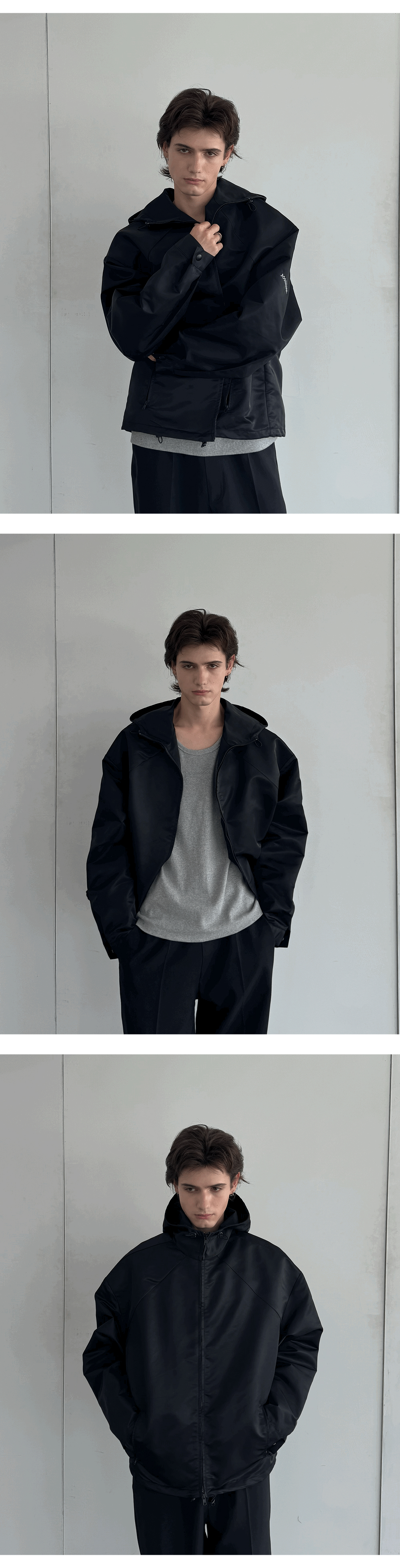 Shoulder Windbreaker Jacket 탄탄한 일본 나일론 원단을 사용한 바람막이 제품으로 어깡 실루엣이 약간 가미되었습니다. 깔끔한 무드를 살린 제품으로 슬랙스와 함께 착용해도 잘 어울리는 제품입니다. DETAIL - 오버핏 나일론 윈드브레이커 자켓 - Composition : 100% Nylon (Made in Japan) - 탄탄한 일본 나일론 원단 - 특유의 실루엣이 잡혀있는 제품 - 오버 핏 - IX 자수 로고 - 드라이클리닝 권장 SIZE - M : 어깨 61 가슴 66 소매기장 60 총기장 69.5 - L : 어깨 63 가슴 69 소매기장 62 총기장 72 (단위 : CM, 오차범위 1-2CM)