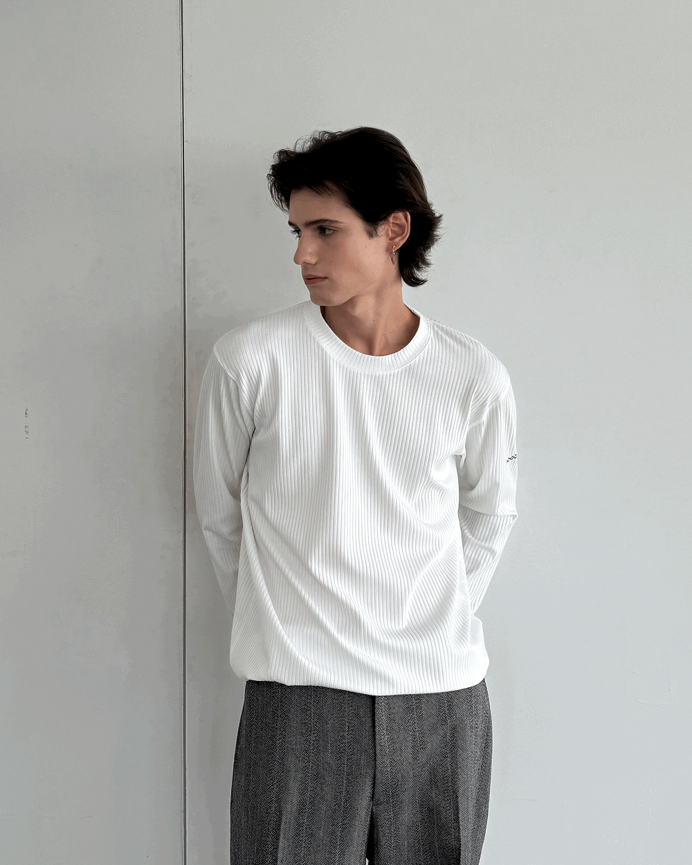 Fluid Long Sleeves 일본 폴리 비스코스 소재로 제작되어 부드럽게 몸을 감싸는 실루엣을 보여줍니다. 목 부분은 시보리 대신 제 원단을 사용해 더욱 유려하고 목 부분이 여유로운 느낌을 연출했습니다. DETAIL - 재패니즈 패브릭 폴리 비스코스 롱 슬리브 - Composition : 72% Polyester, 24% Viscose, 4% Elastane(Made in Japan) - 유려한 느낌의 일본 원단 - 레귤러 핏 - IX 자수 로고 - 드라이클리닝 권장 - Made in Korea SIZE - M : 어깨 49.5 가슴 58.5 소매기장 64 총기장 63.5 - L : 어깨 51 가슴 61 소매기장 66 총기장 66 (단위 : CM, 측정 기준, 측정 도구에 따라서 오차가 있을 수 있습니다.)
