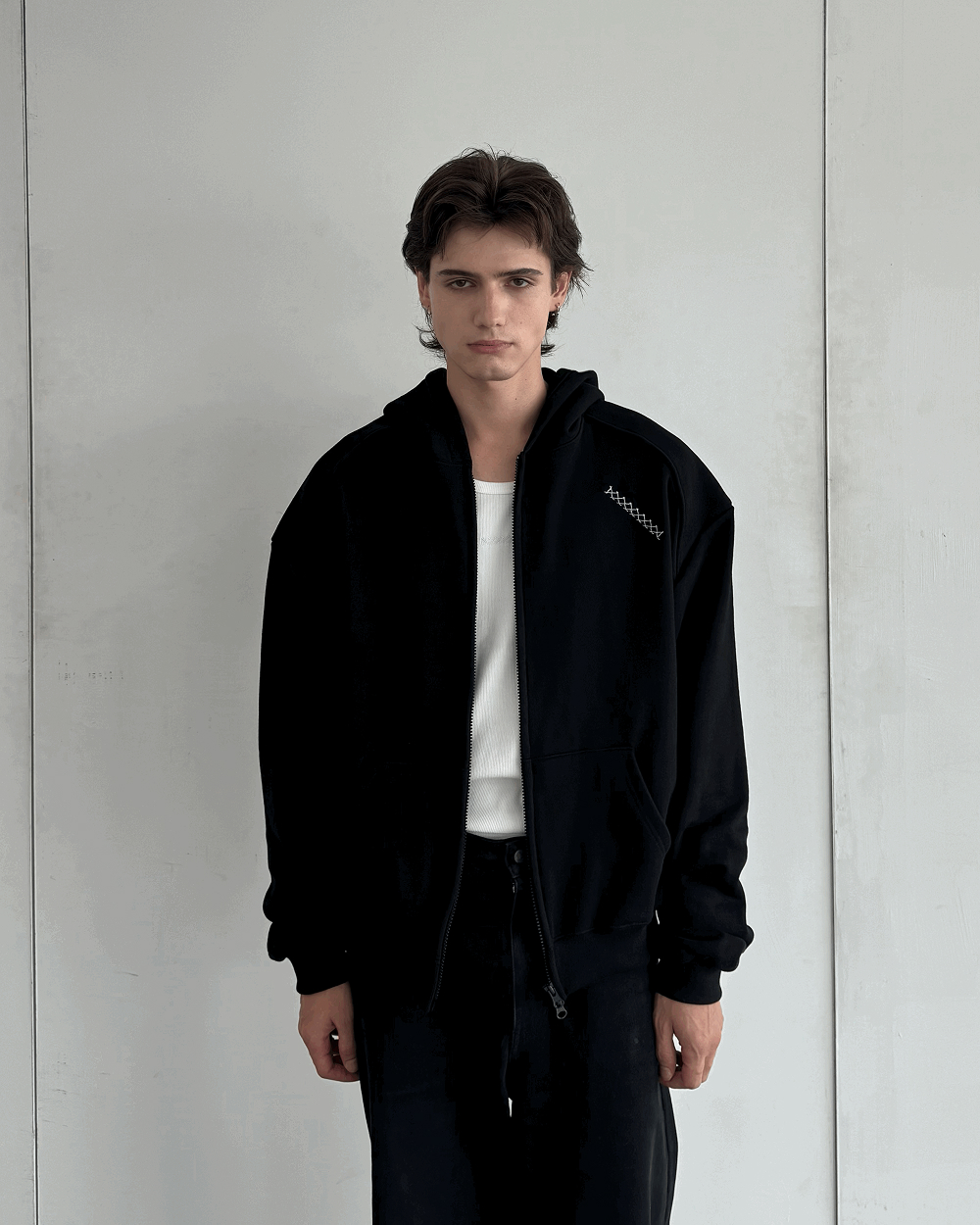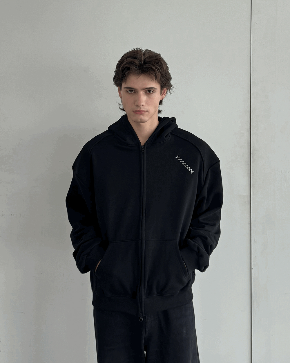 Shoulder Hoodie Zip-up 고유의 패턴 작업을 통해 어깨 부분의 실루엣이 강조된 후드집업입니다. DETAIL - 어깨 실루엣이 강조된 후드 집업 - Composition : 100% Cotton - 헤비 코튼 원단 - 오버 핏 - Ykk 비슬론 2way Zip - 어깨 디테일 - IX 자수 로고 - 드라이 클리닝 권장 SIZE - M : 어깨 64 가슴 63 소매기장 70 총기장 60 - L : 어깨 66 가슴 65 소매기장 72 총기장 63 (단위 : CM, 오차범위 1CM) RECOMMENDED SIZE M사이즈 : 여성분들 및 체구가 작으신 남성분들 추천 L사이즈 : 170중반이상의 남성분들 추천