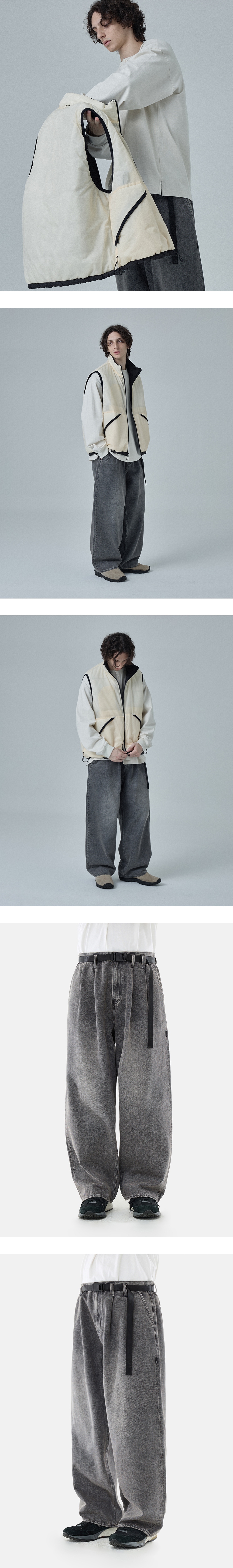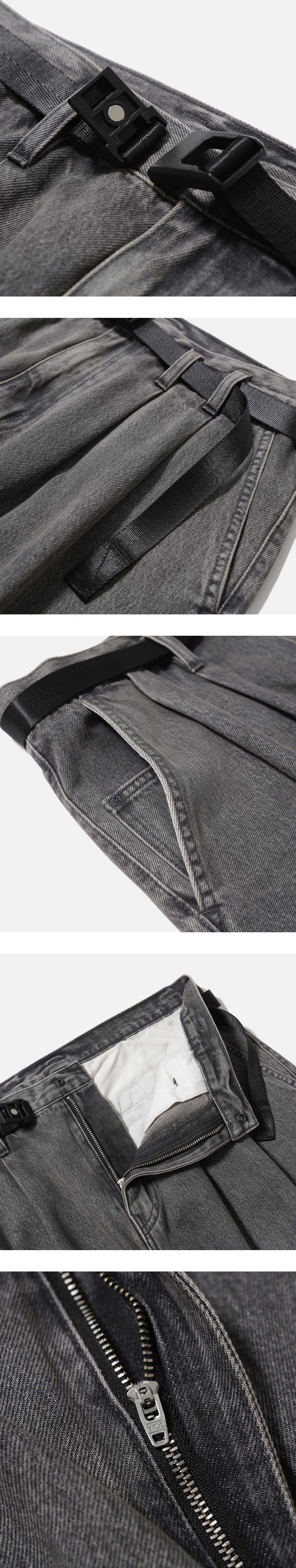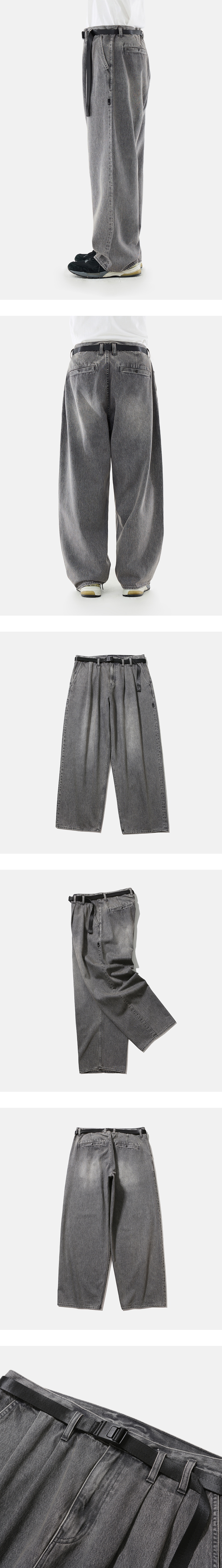 와이드 한 실루엣이 돋보이는 벨트가 달린 데님 팬츠 · 와이드 한 오버사이즈 실루엣. · 11온즈의 데님 원단 사용. · 자석이 부착된 버클을 사용한 탈부착이 가능한 벨트. · 허리 부분 턱과 다트를 넣어 편안한 착용감과 풍성한 실루엣 연출. · 지퍼 플라이 사양. · 스냅 버튼이 부착되어 있는 뒤 주머니 사양. · 사이드 심 부분 모이프 심볼 포인트 라벨 부착. *데님 직조 방법에 의해 아랫부분으로 갈수록 원단이 자연스럽게 뒤틀리는 현상이 있을 수 있습니다.