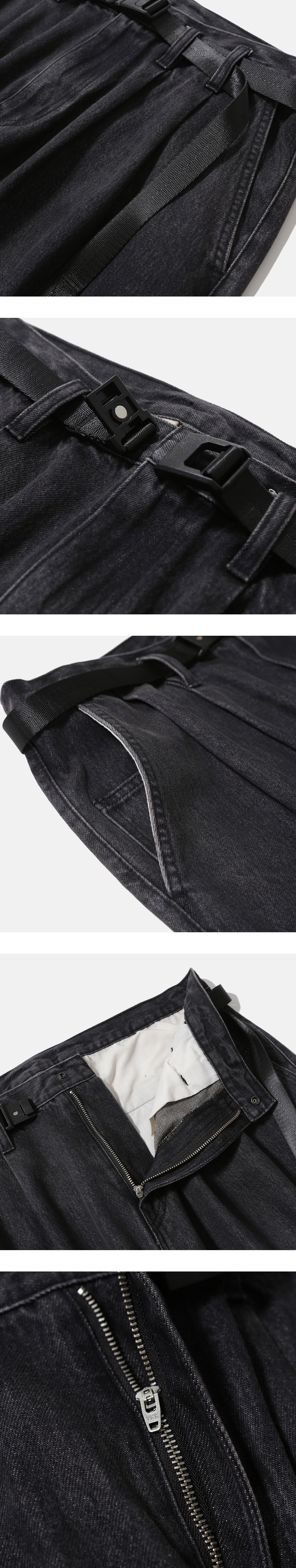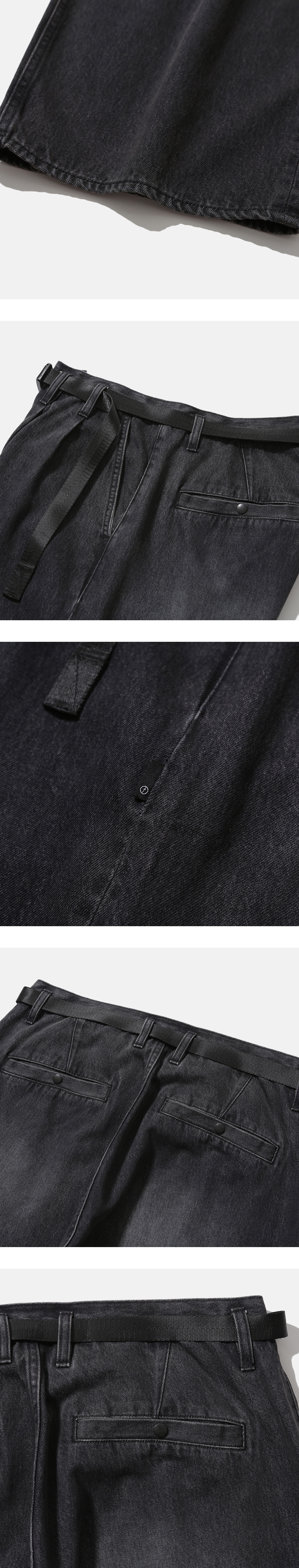 와이드 한 실루엣이 돋보이는 벨트가 달린 데님 팬츠 · 와이드 한 오버사이즈 실루엣. · 11온즈의 데님 원단 사용. · 자석이 부착된 버클을 사용한 탈부착이 가능한 벨트. · 허리 부분 턱과 다트를 넣어 편안한 착용감과 풍성한 실루엣 연출. · 지퍼 플라이 사양. · 스냅 버튼이 부착되어 있는 뒤 주머니 사양. · 사이드 심 부분 모이프 심볼 포인트 라벨 부착. *데님 직조 방법에 의해 아랫부분으로 갈수록 원단이 자연스럽게 뒤틀리는 현상이 있을 수 있습니다.