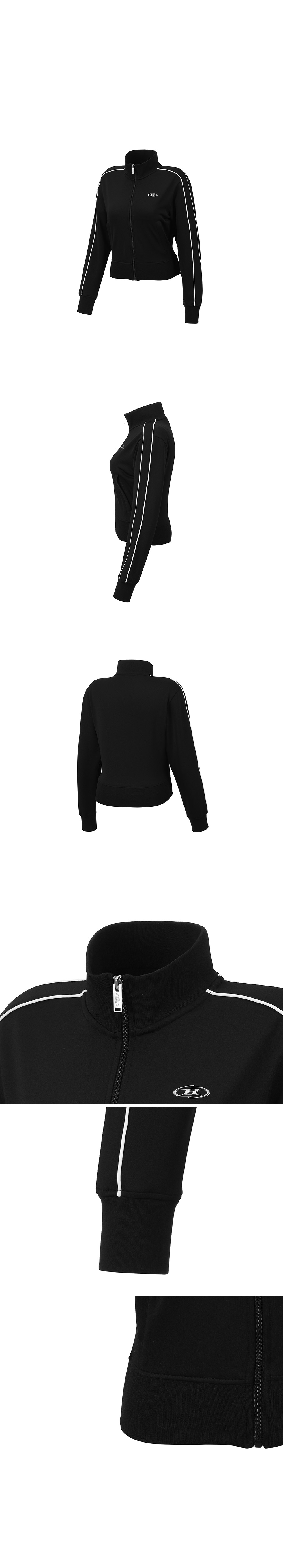 [DETAILS] * W 파이핑 라인 집업 자켓 - 고신축 폴리 레이온 스판 원단 - B 로고 포인트 - 지퍼 포켓 - 파이핑 디테일 - 슬림핏 Material : POLYESTER 85% RAYON 10% POLYURETHANE 5% Fitting : GY 1 Size, 165cm, 53kg