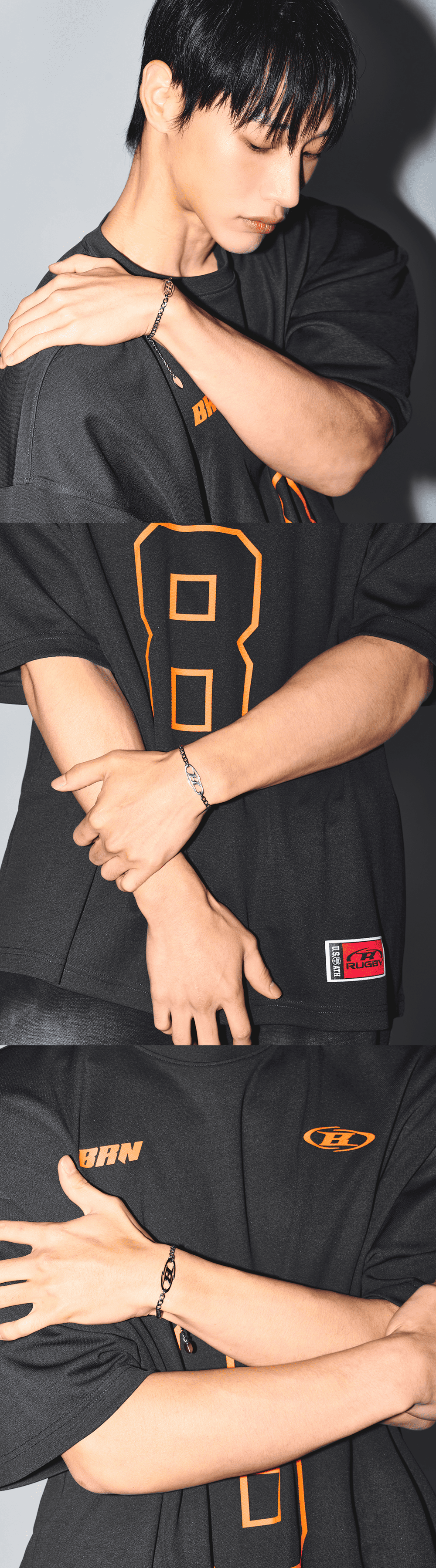 [DETAILS] * 서지컬 스틸 B 로고 팔찌 - 서지컬 스틸 - 심볼 로고 펜던트 및 레이저 각인 로고 - 길이 조절 가능 Material : SURGICAL STEEL 100% [SIZE GUIDE] (Unit : cm) F : Length 23