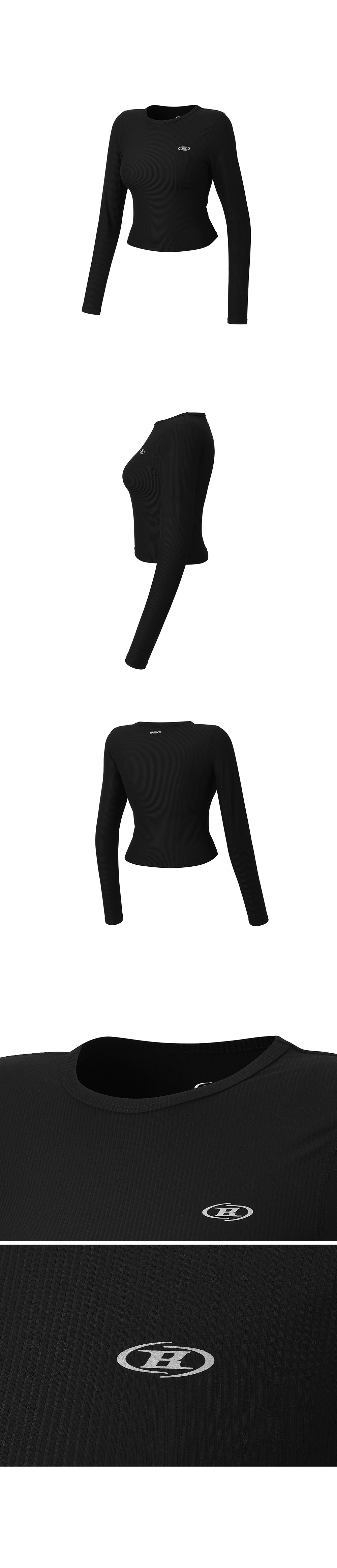 본투윈 우먼 피트니스 리브드 롱슬리브 블랙