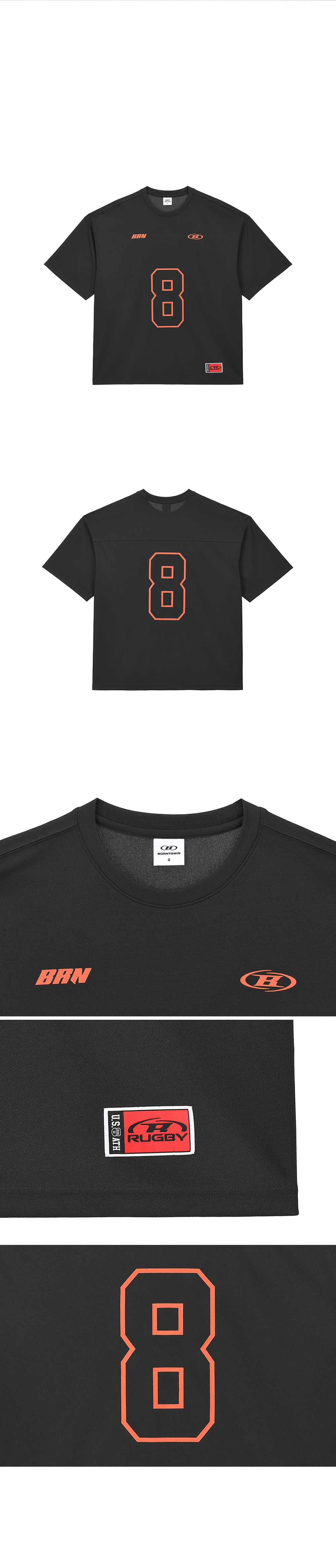 [DETAILS] * BRN 쿨메쉬 엑스트라핏 티셔츠 - 흡습속건 쿨메쉬 폴리 원단 - 럭비 무드 그래픽 로고 - 시즈널 라벨 포인트 - 엑스트라핏 Material : POLYESTER 100% Fitting : MK 2 Size, 181cm, 71kg