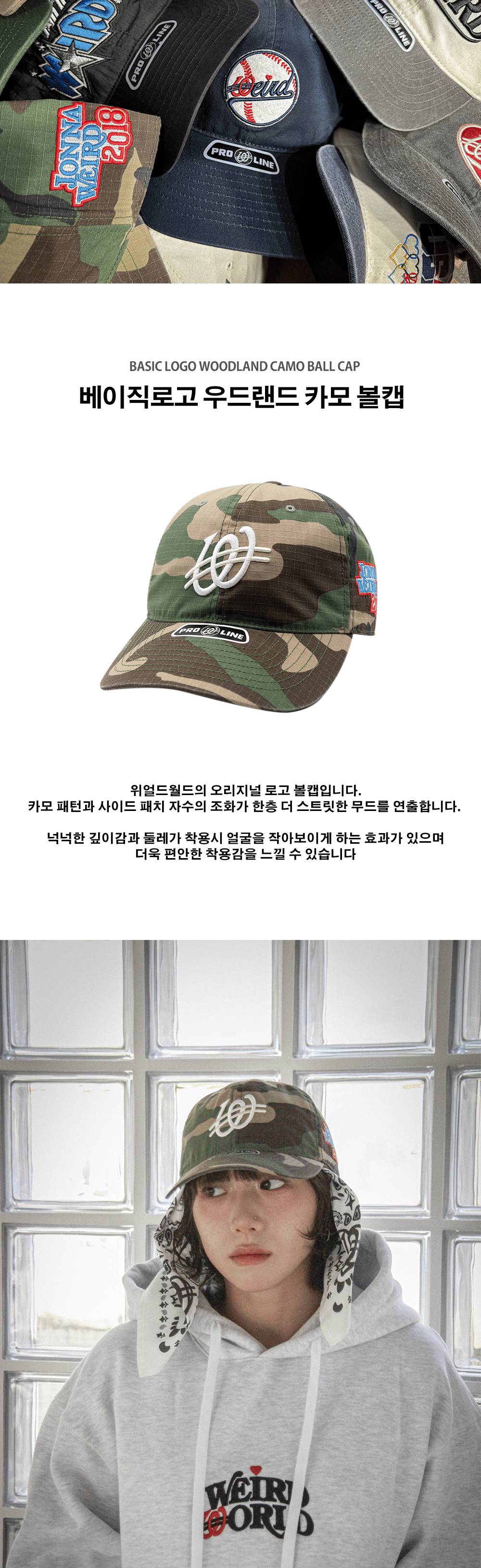 위얼드월드 베이직로고 우드랜드 카모 볼캡