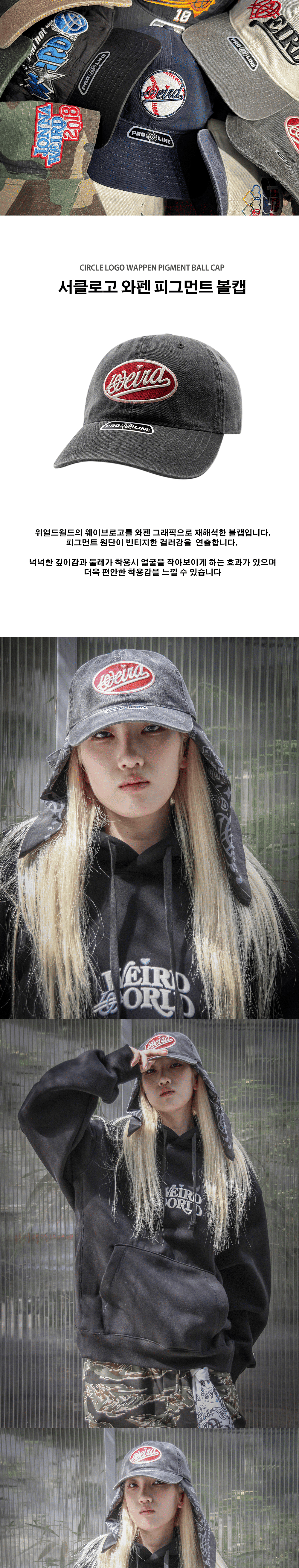 위얼드월드 서클로고 와펜 피그먼트 볼캡