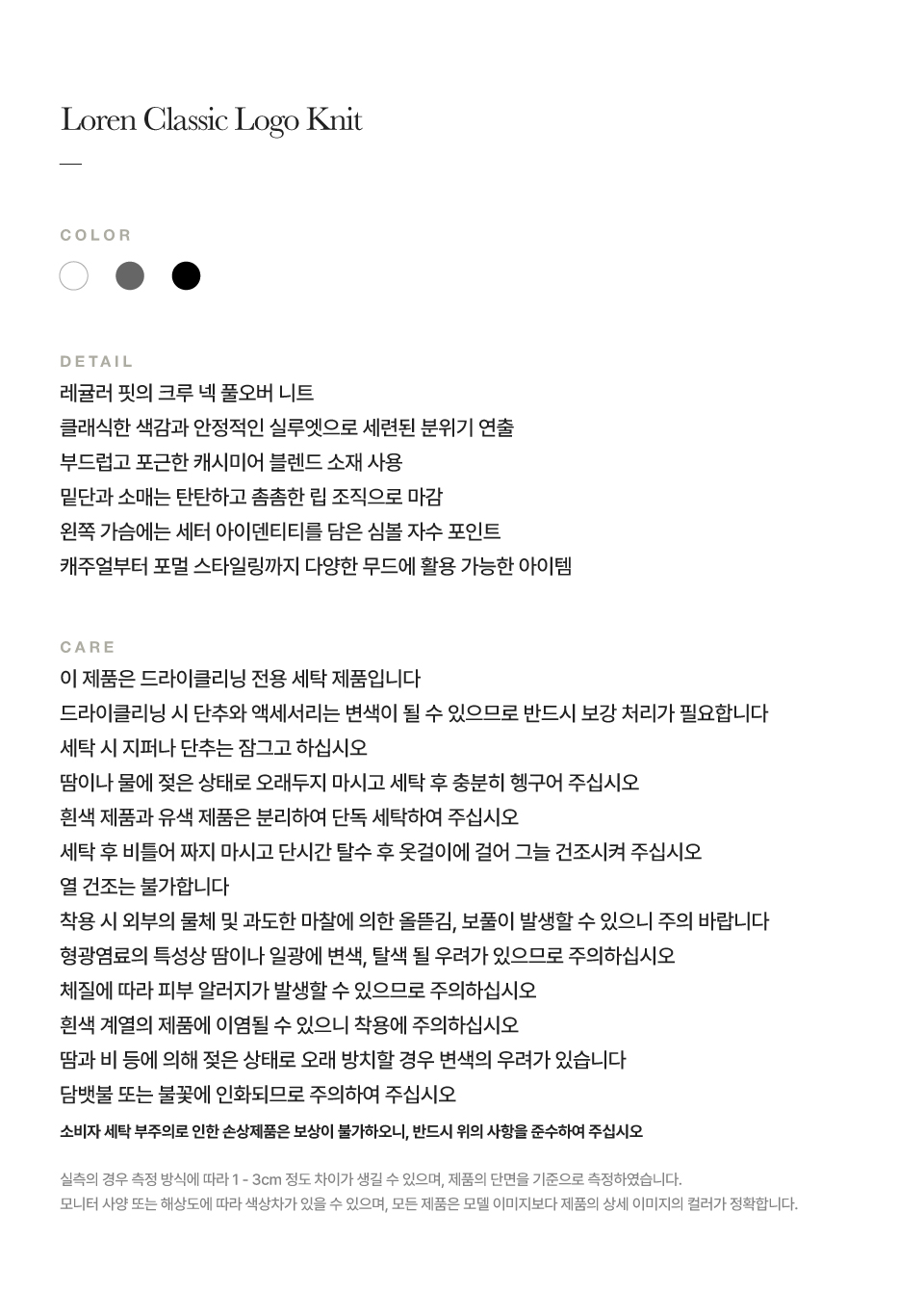 측정 방법에 따라 사이즈에 일부 오차가 있을 수 있습니다.