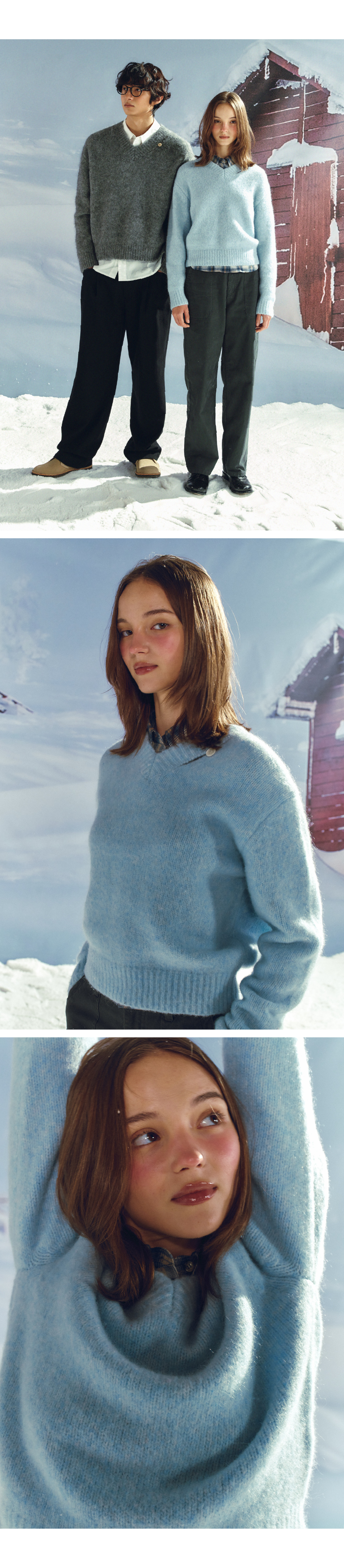 세터 우먼 에센 투 톤 모헤어 블렌드 니트 스카이 블루