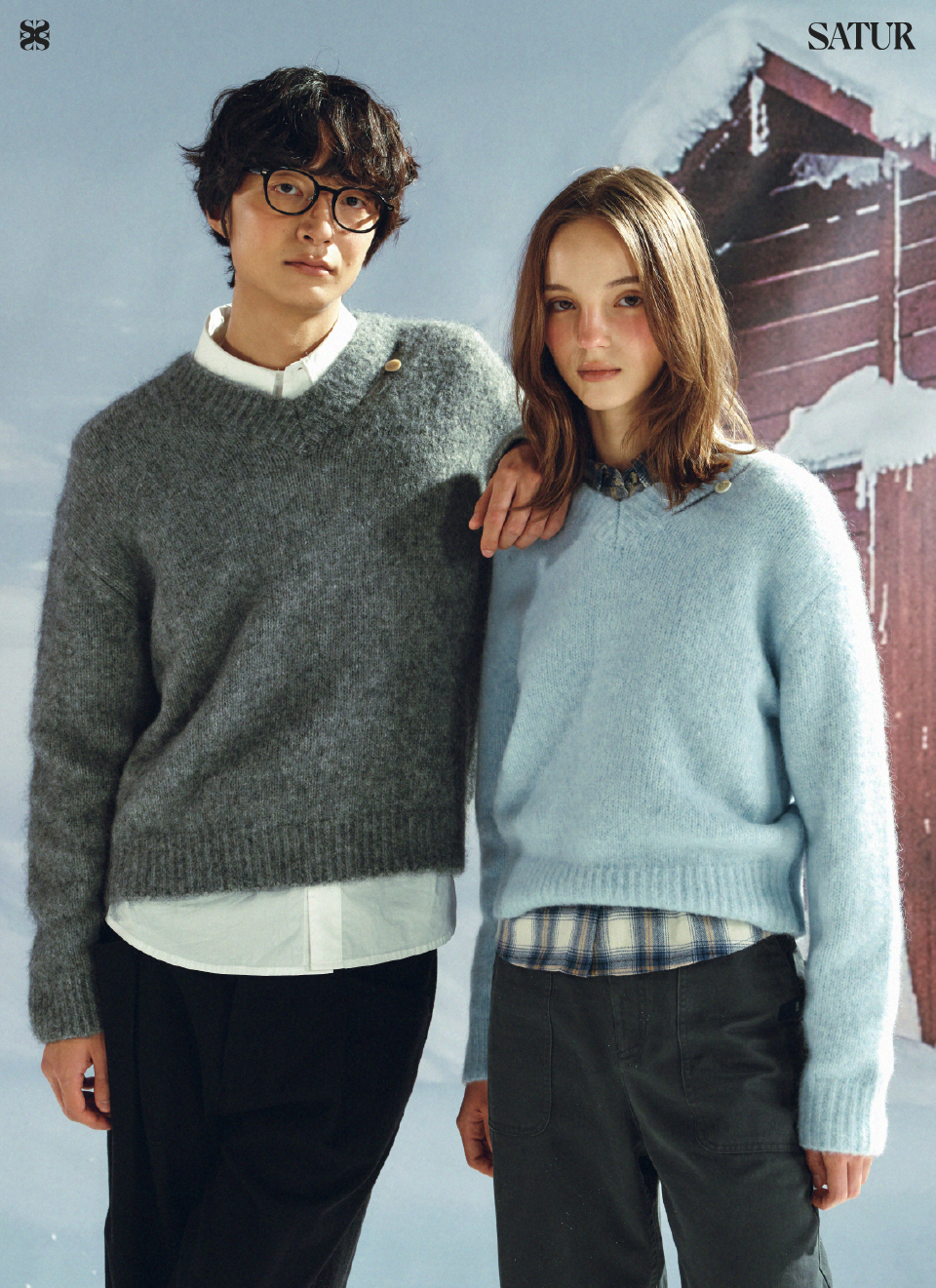 SATUR W Essen Two Tone Mohair Blend Knit Sky Blue