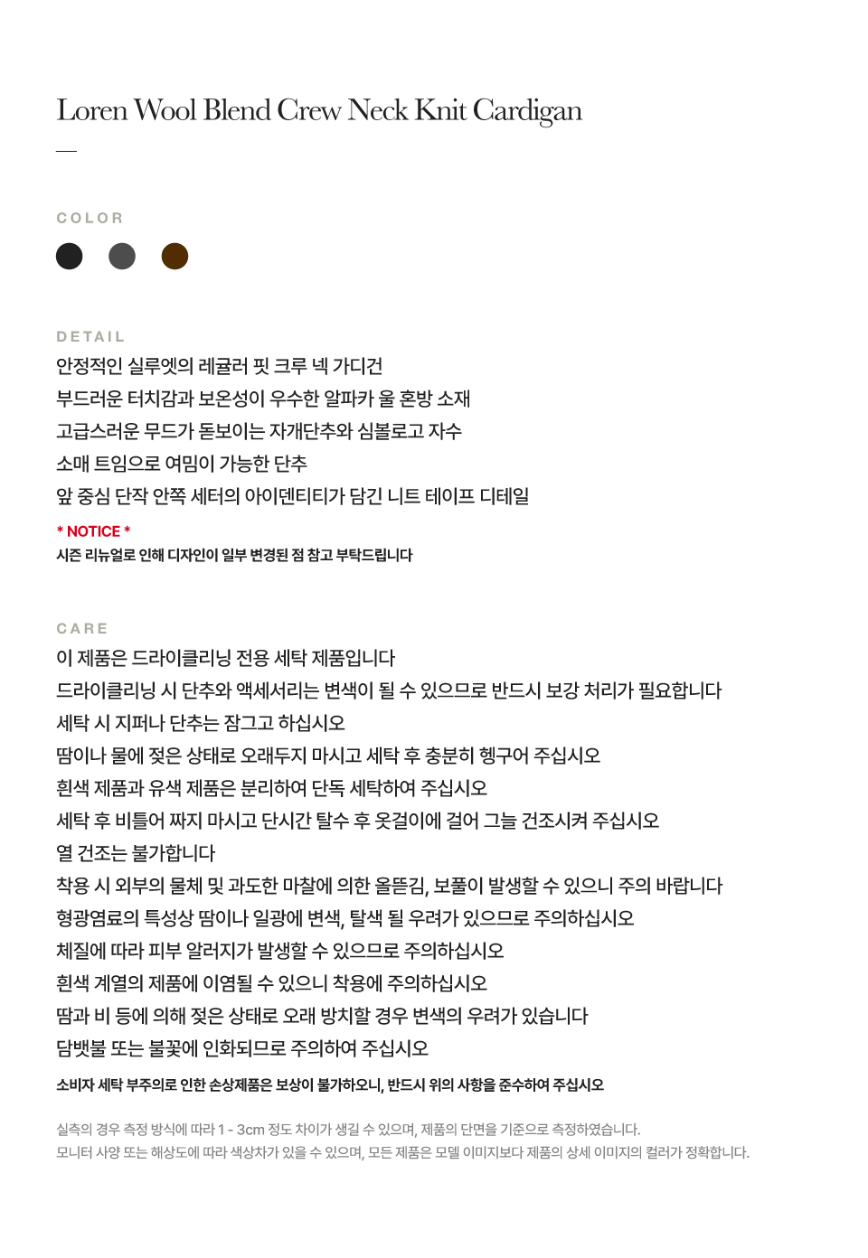 측정 방법에 따라 사이즈에 일부 오차가 있을 수 있습니다.