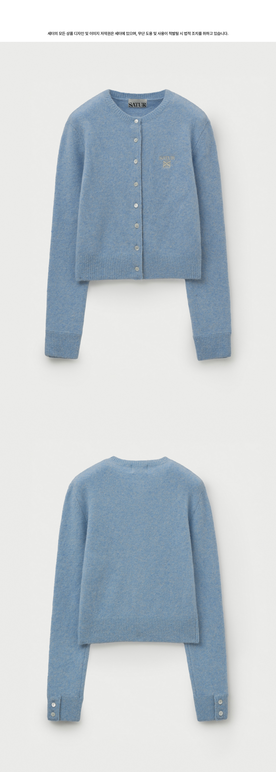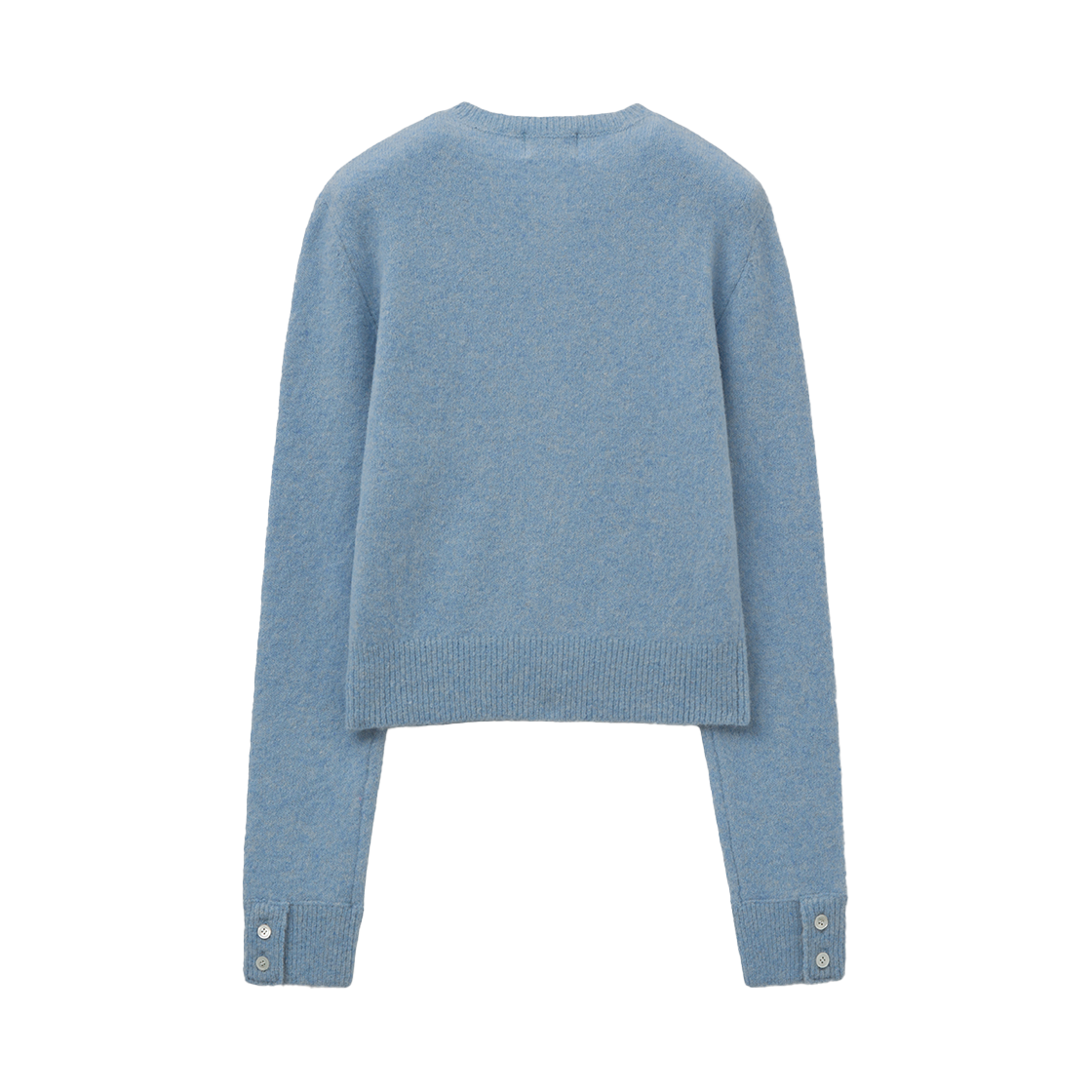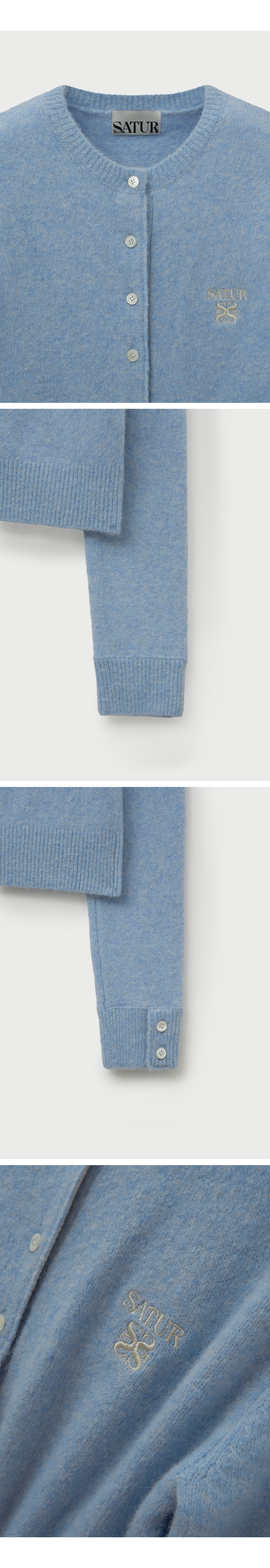 SATUR W Loren Wool Blend Crew Neck Knit Cardigan Sky Blue