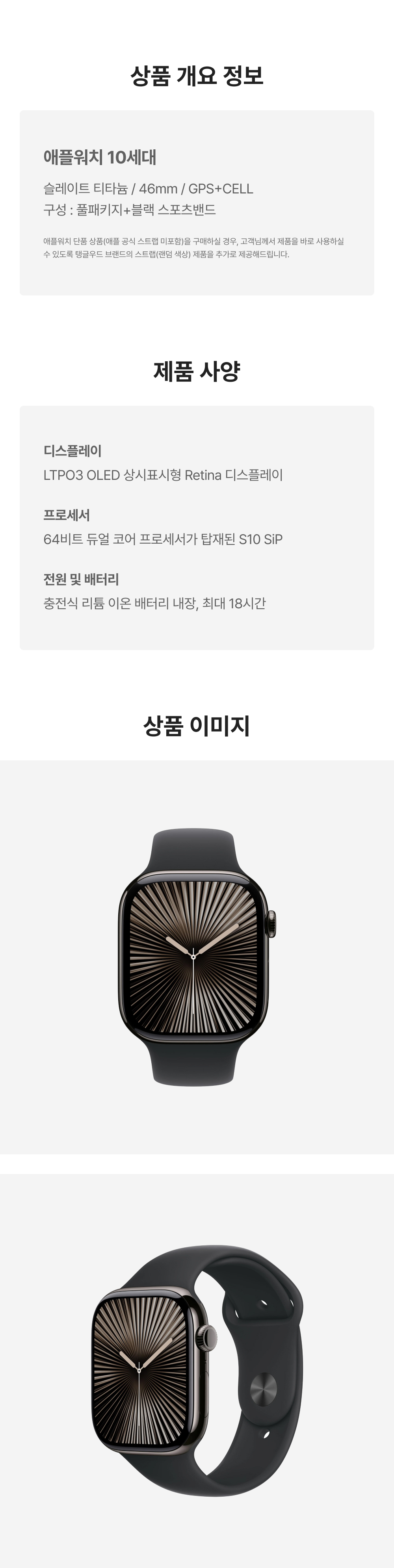 [S등급] 리퍼비시 애플워치 10 46mm 셀룰러 슬레이트 티타늄 케이스 스포츠 밴드 블랙