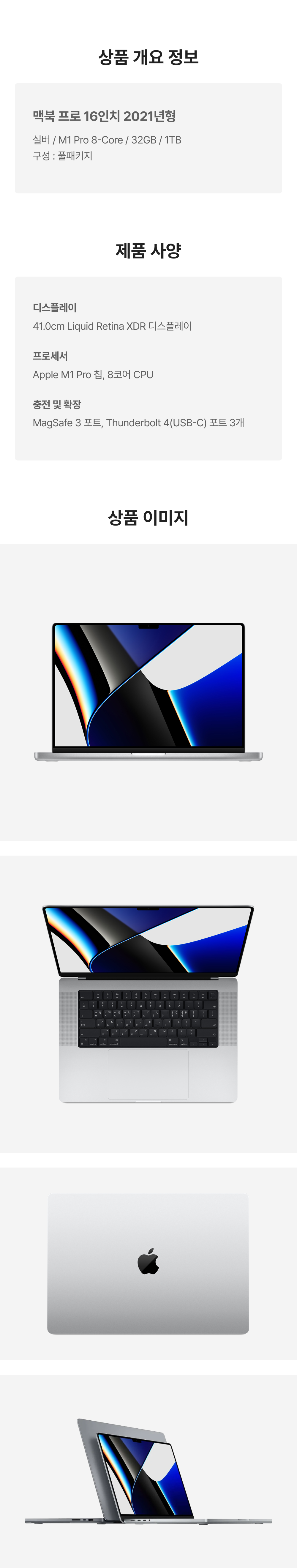 [S등급] 리퍼비시 2021 맥북 프로 16 M1 Pro 10c 1테라 SSD 32기가 램 실버