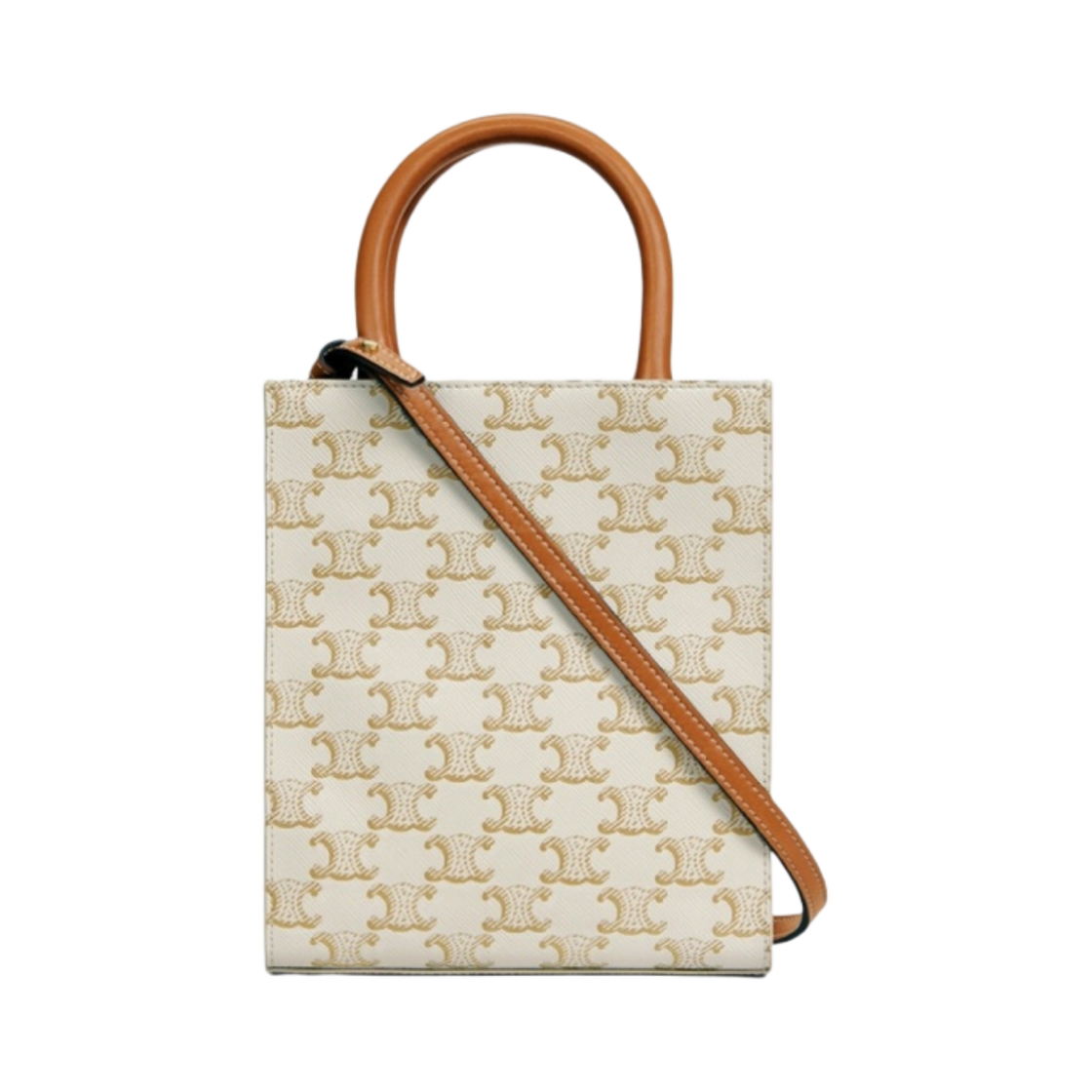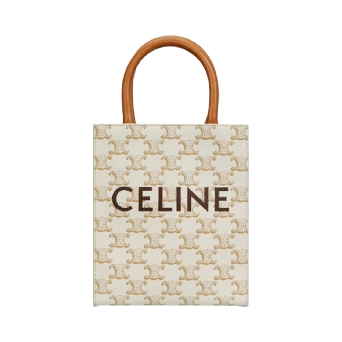 셀린느 트리옹프 캔버스 & 셀린느 프린트 카프스킨 미니 버티컬 카바스 화이트