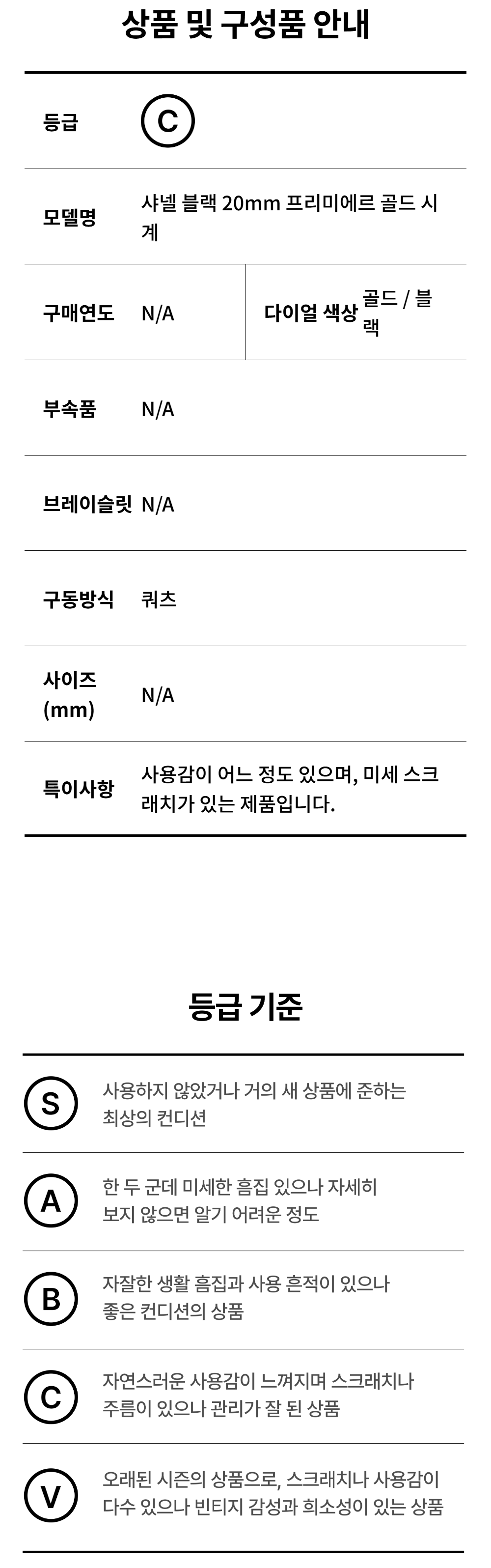 샤넬 블랙 20mm 프리미에르 골드 시계 A-B31329