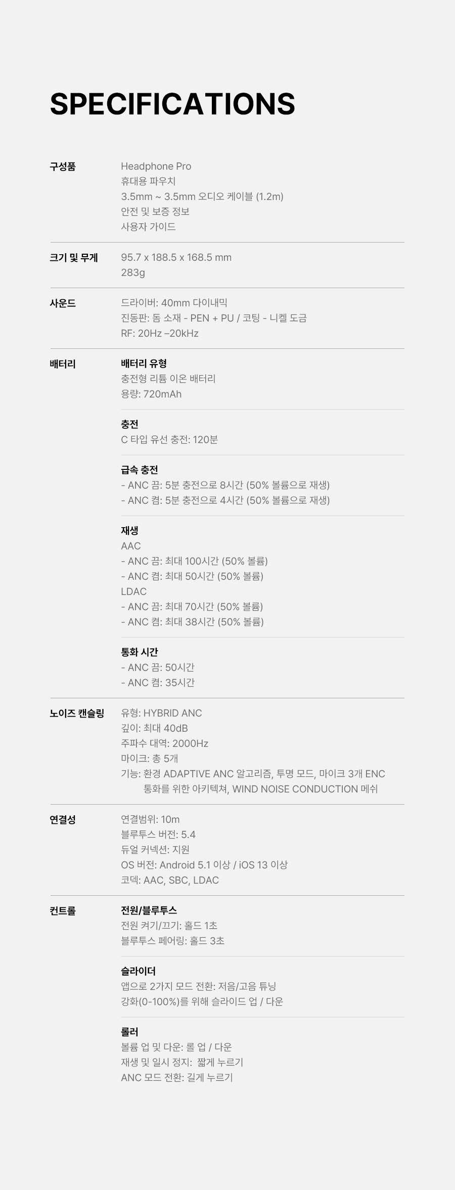 씨엠에프 바이 낫싱 헤드폰 프로 노이즈캔슬링 블루투스 헤드폰 라이트 그레이